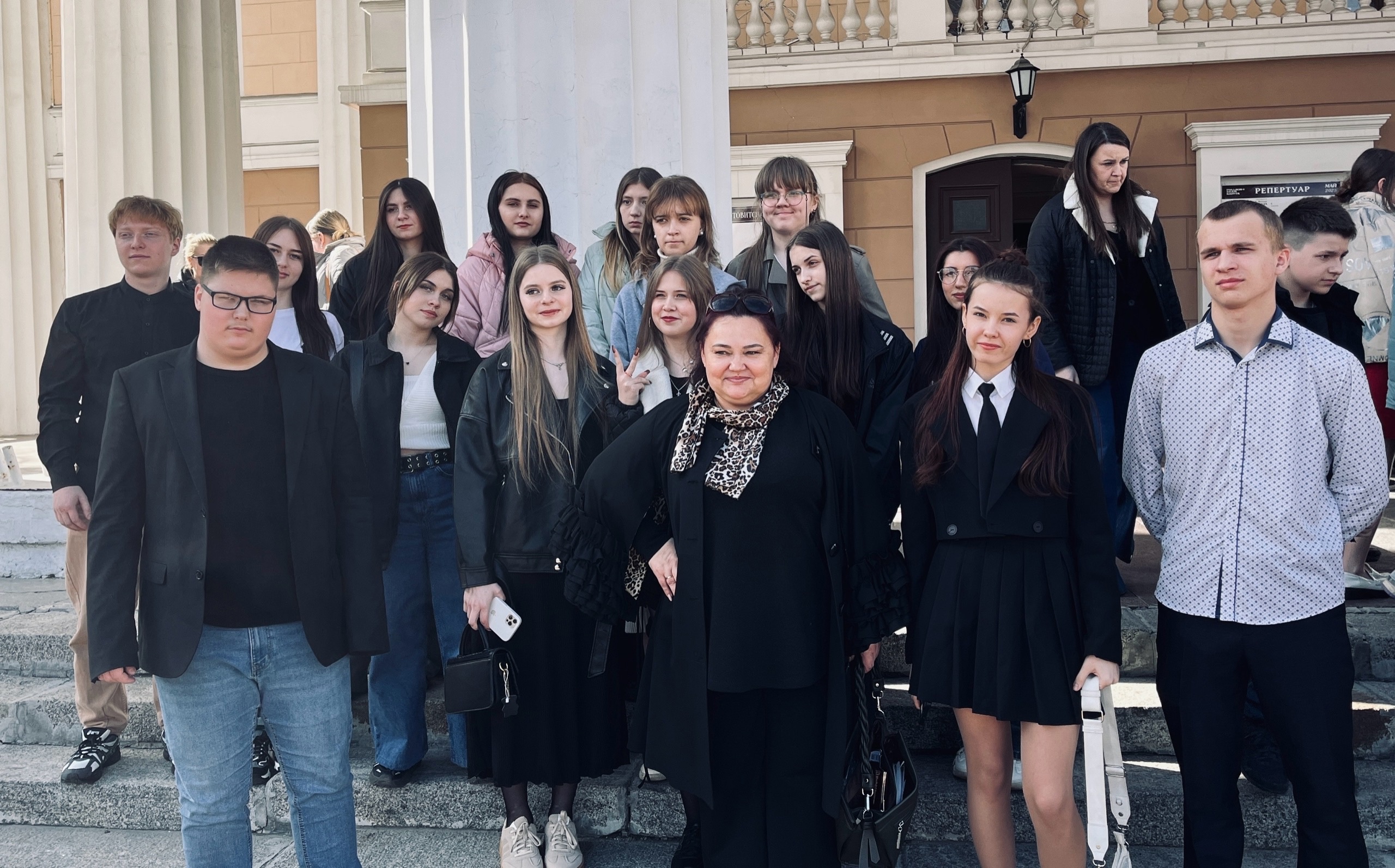 Накануне 80-летия Великой Победы группа Б2311 с классным руководителем Н.Н. Дьячковой посетили Драматический театр г. Брянска, где состоялся показ спектакля "А завтра была война" по одноименной повести Б. Васильева.