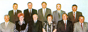 2000 г. Руководители институтов, факультетов и подразделений Брянской ГСХА (слева направо): 1 ряд: Варывдин В.В., Фадеева Р.В., Гамко Л.Н., Лигачева В.Ф., Прудников Н.Н., Спиридонов В.К.; 2 ряд: Семешкин Н.Т., Осмоловский В.В., Дубовой Г.А., Михайлов О.М., Стрельников А.Ф. |