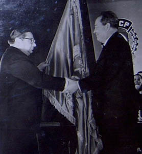 Рылько П.Д. получает из рук Крахмалёва М.К. Орден трудового Красного Знамени, 1967 год. |