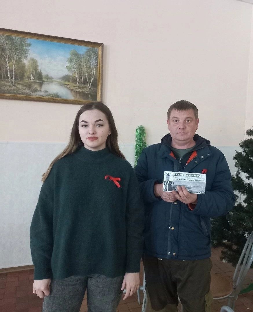 В акции приняли участие волонтеры отряда Новое поколение. Они предложили ребятам ознакомиться с буклетами профилактического содержания и прикололи красную ленту - символ этого дня.