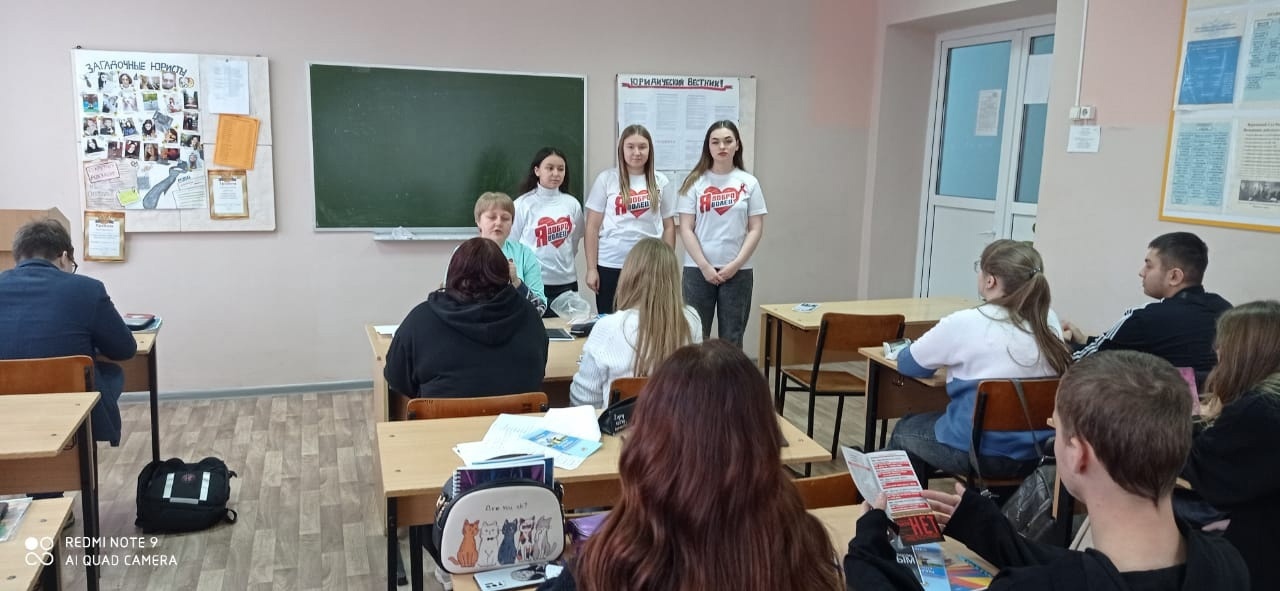 В группе Б2311 фельдшер техникума Афанасьева Лидия Владимировна провела беседу, посвященную Всемирному Дню борьбы со СПИДом.