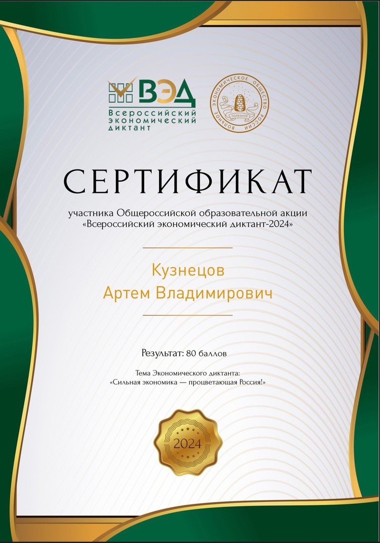 Все участники диктанта показали высокие знания в экономике, истории, культуры, законодательных актах. Участники диктанта расширили экономический кругозор; развили интерес к экономической науке и истории; показали значимость экономической грамотности в условиях постоянно меняющихся реалий современности.
