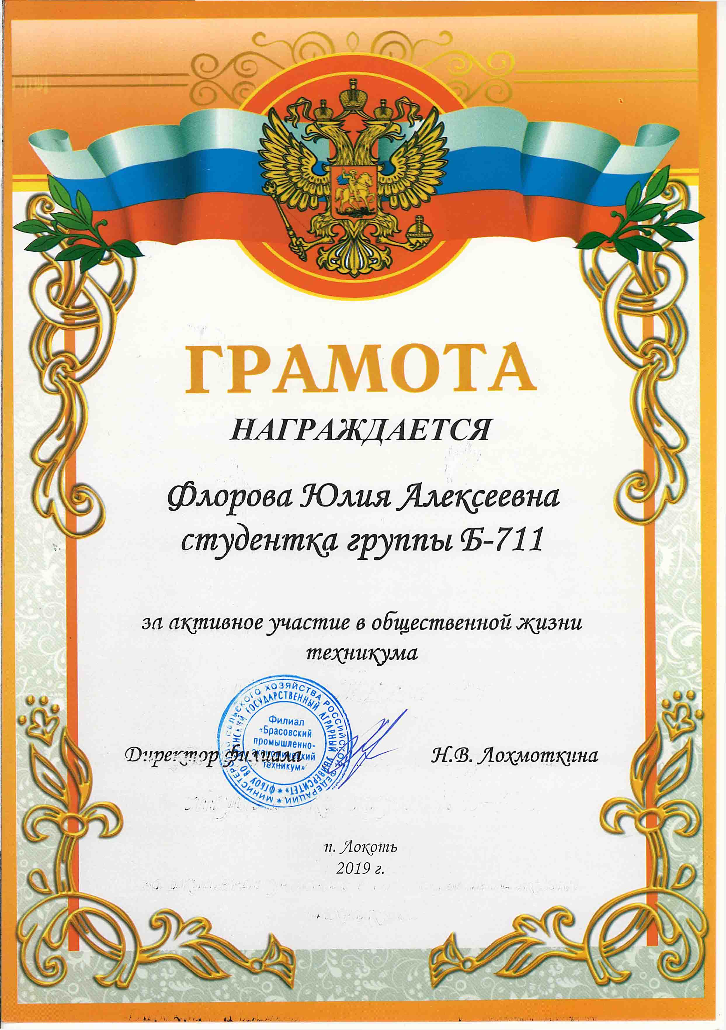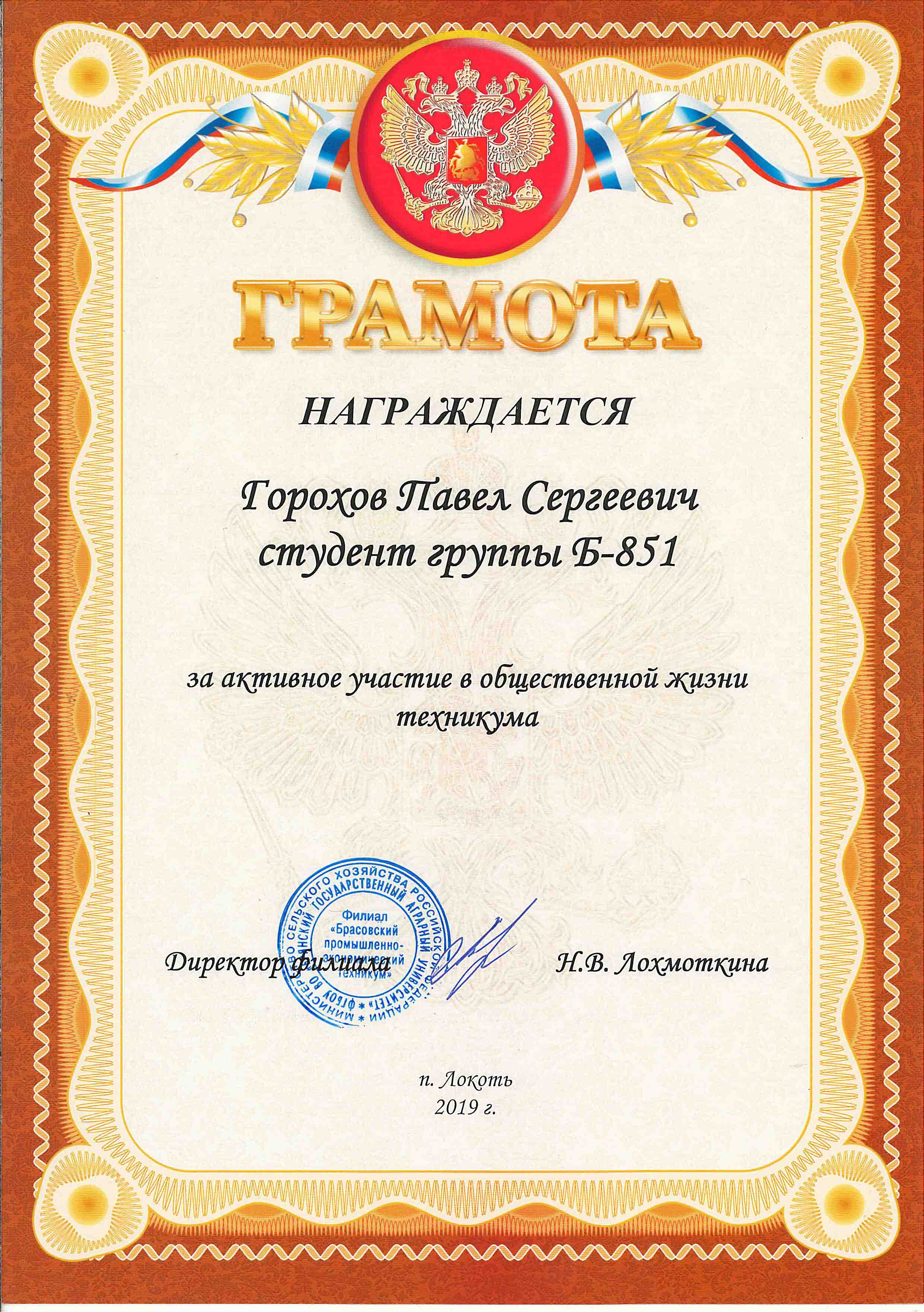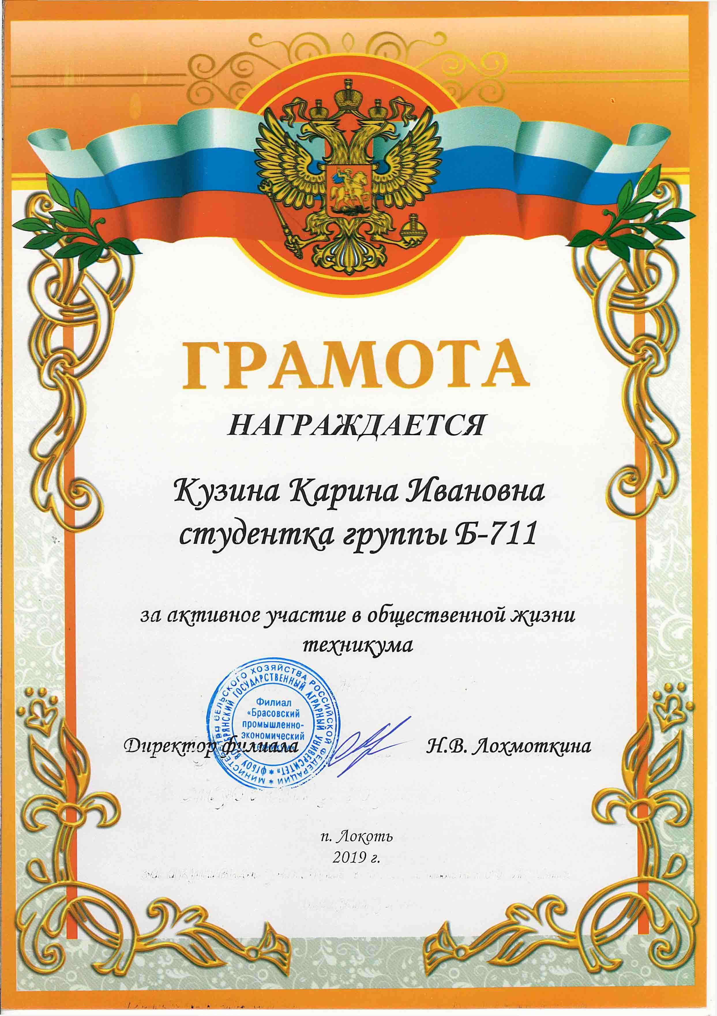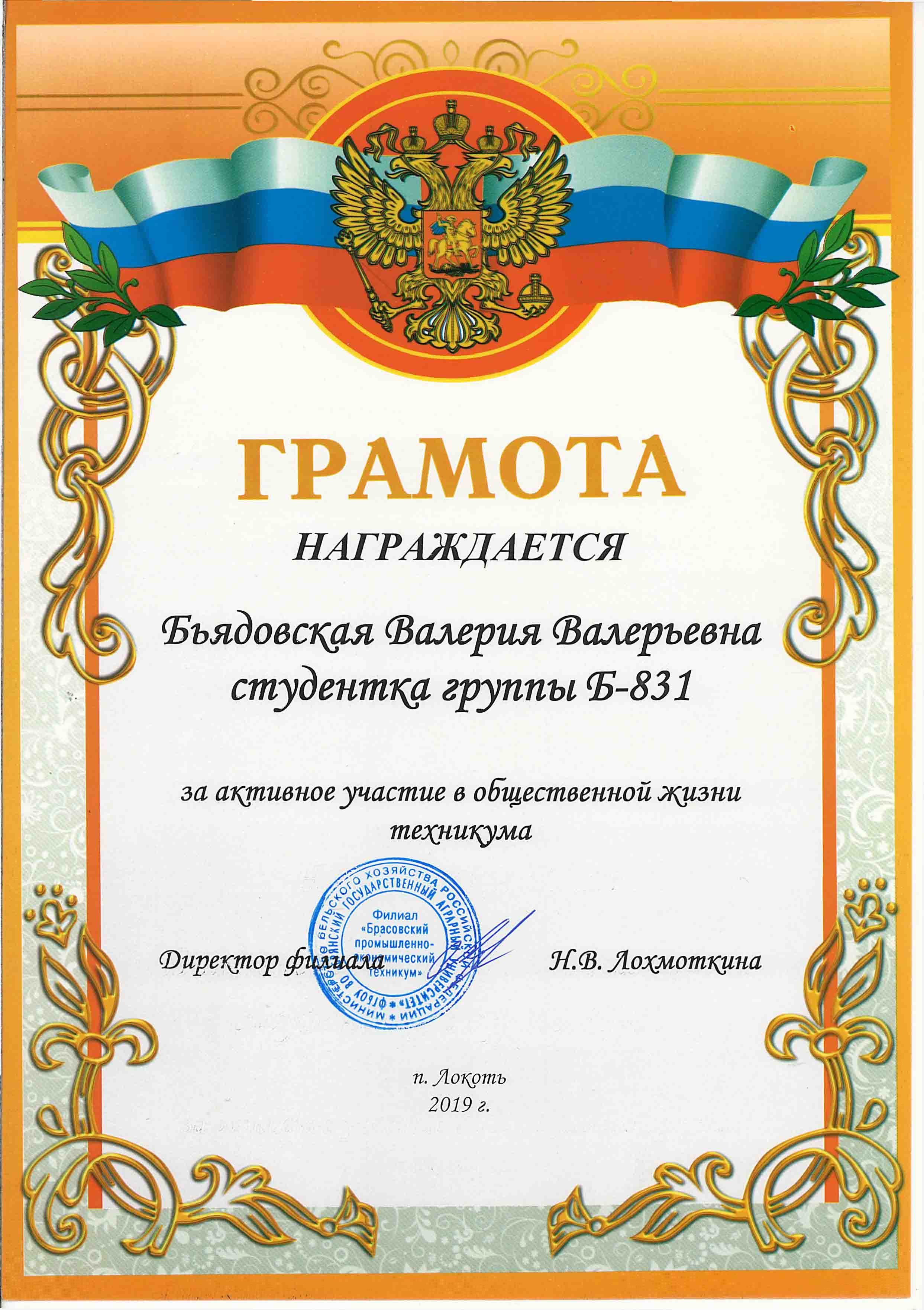 ЗА АКТИВНОЕ УЧАСТИЕ В ОБЩЕСТВЕННОЙ ЖИЗНИ ТЕХНИКУМА