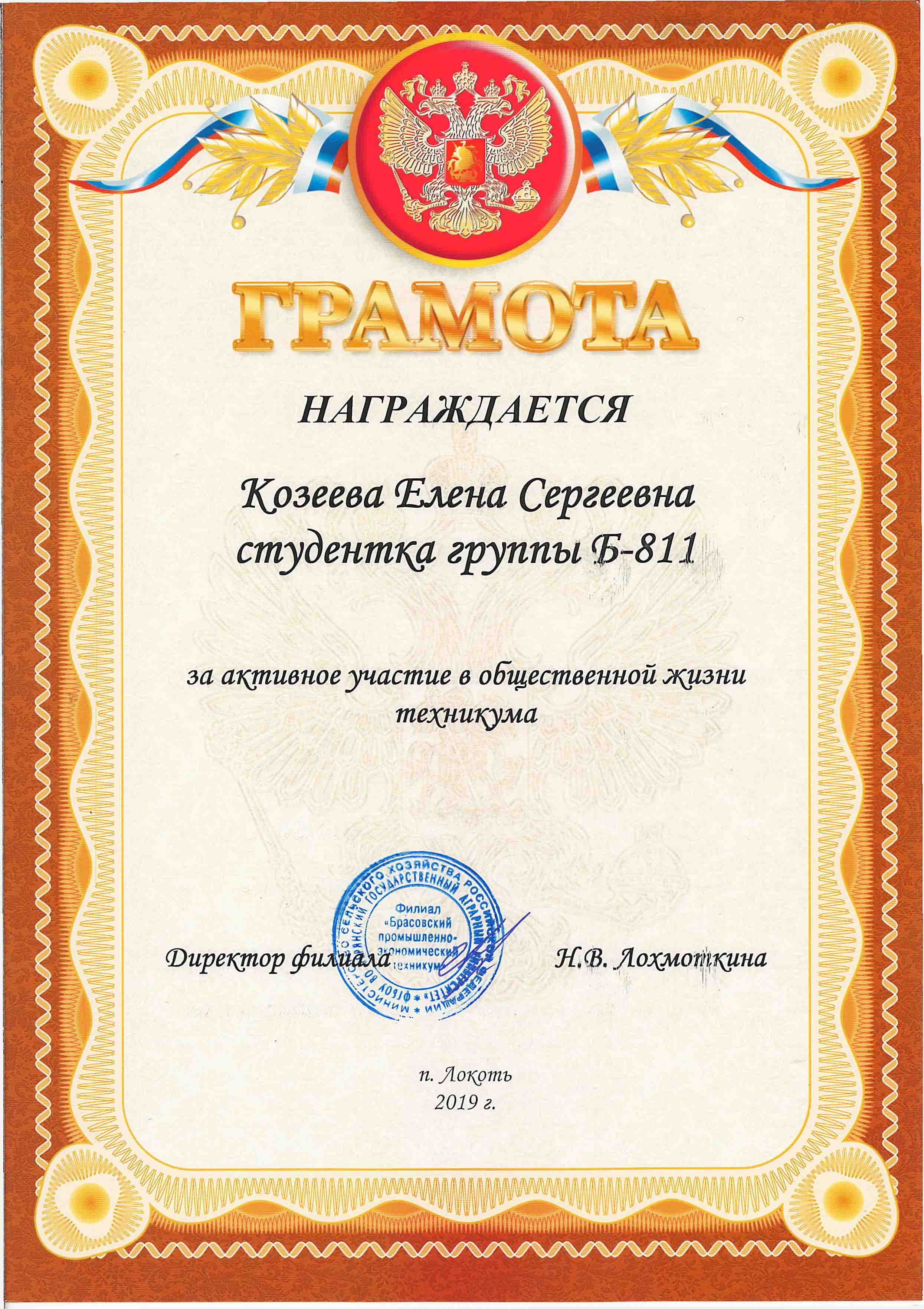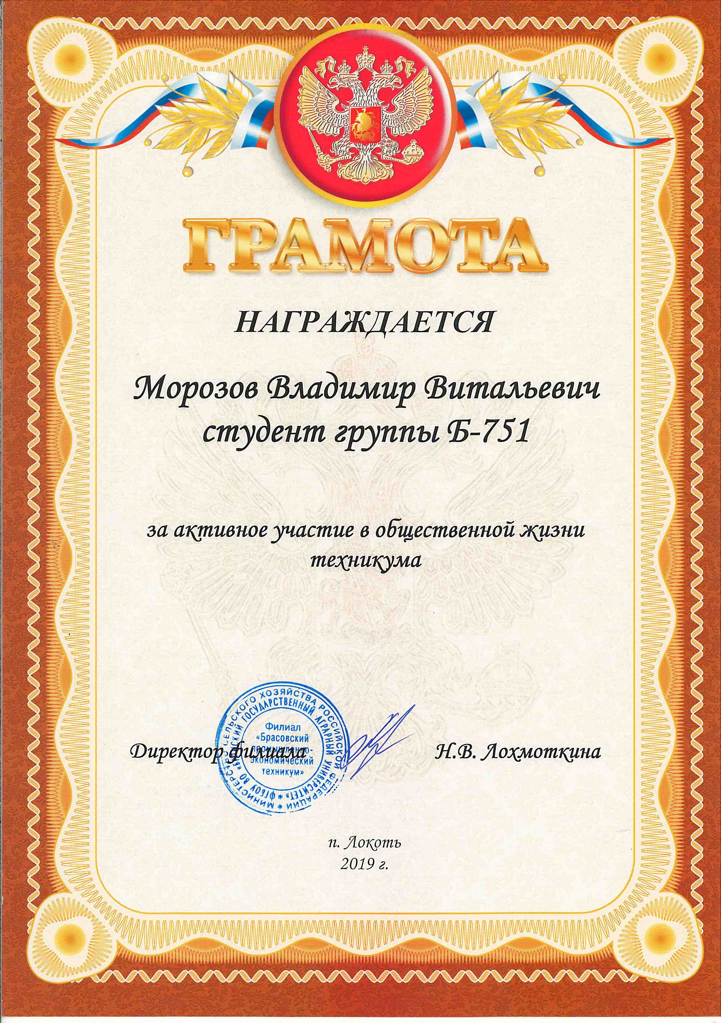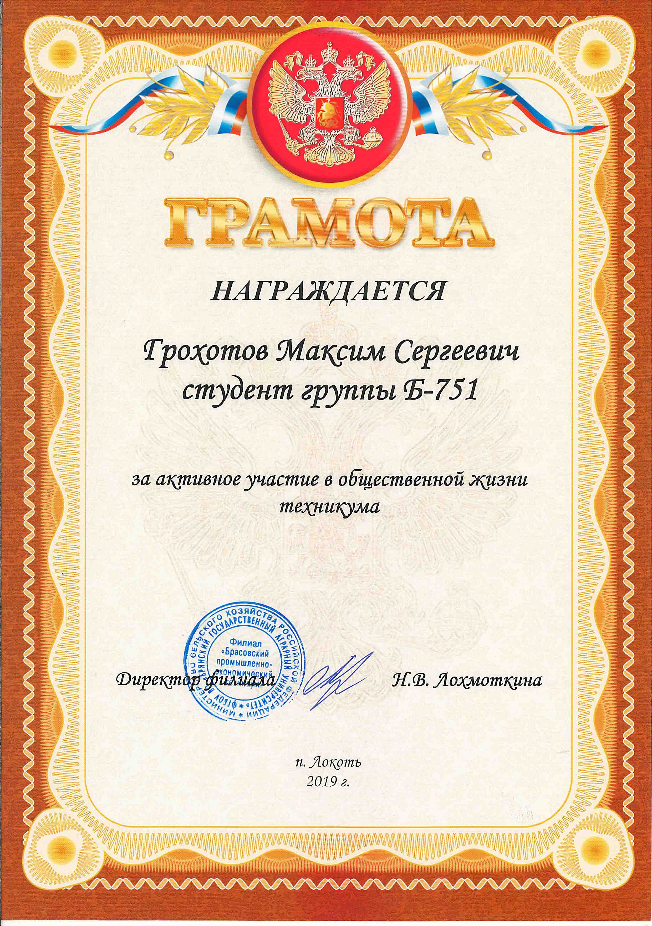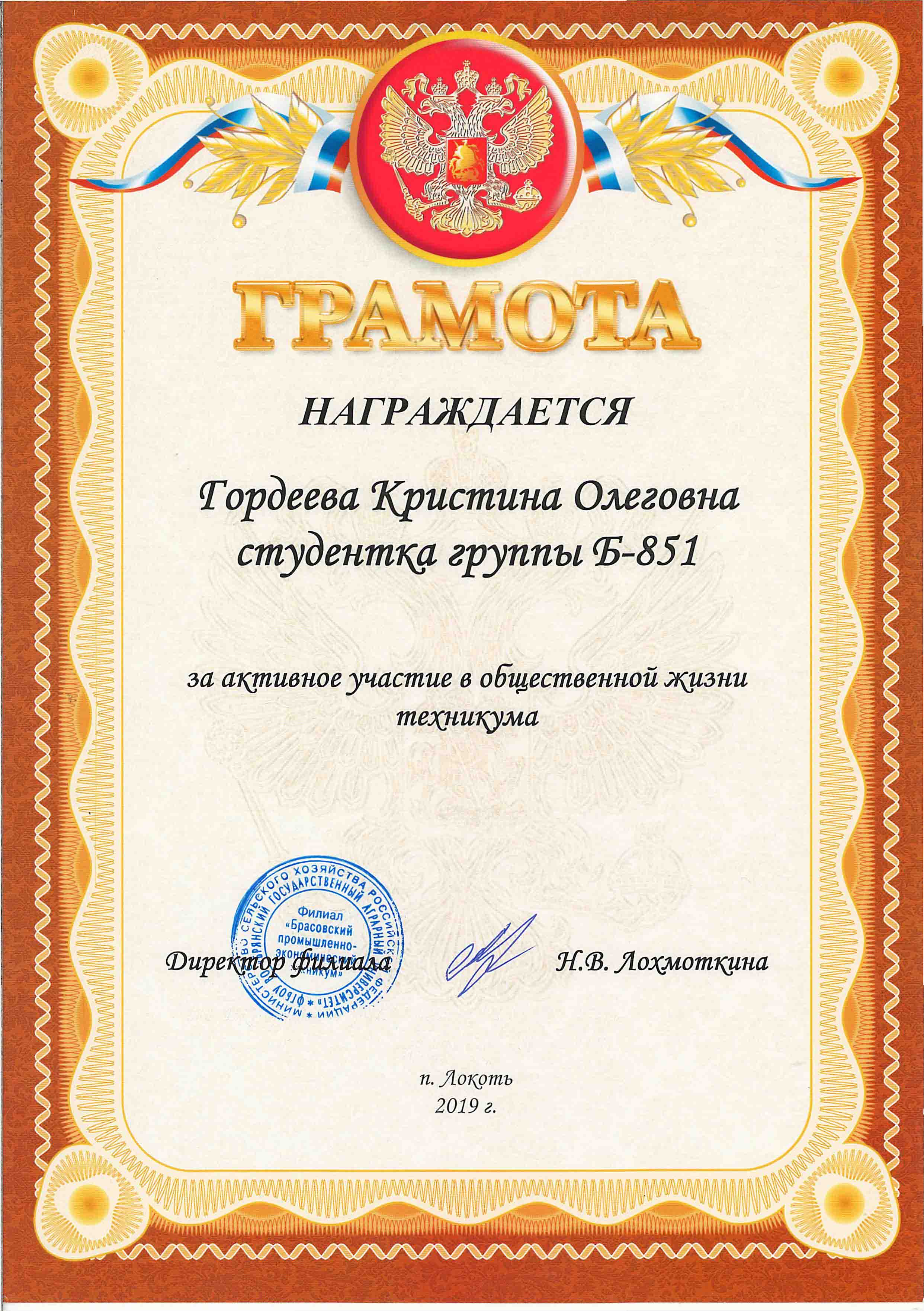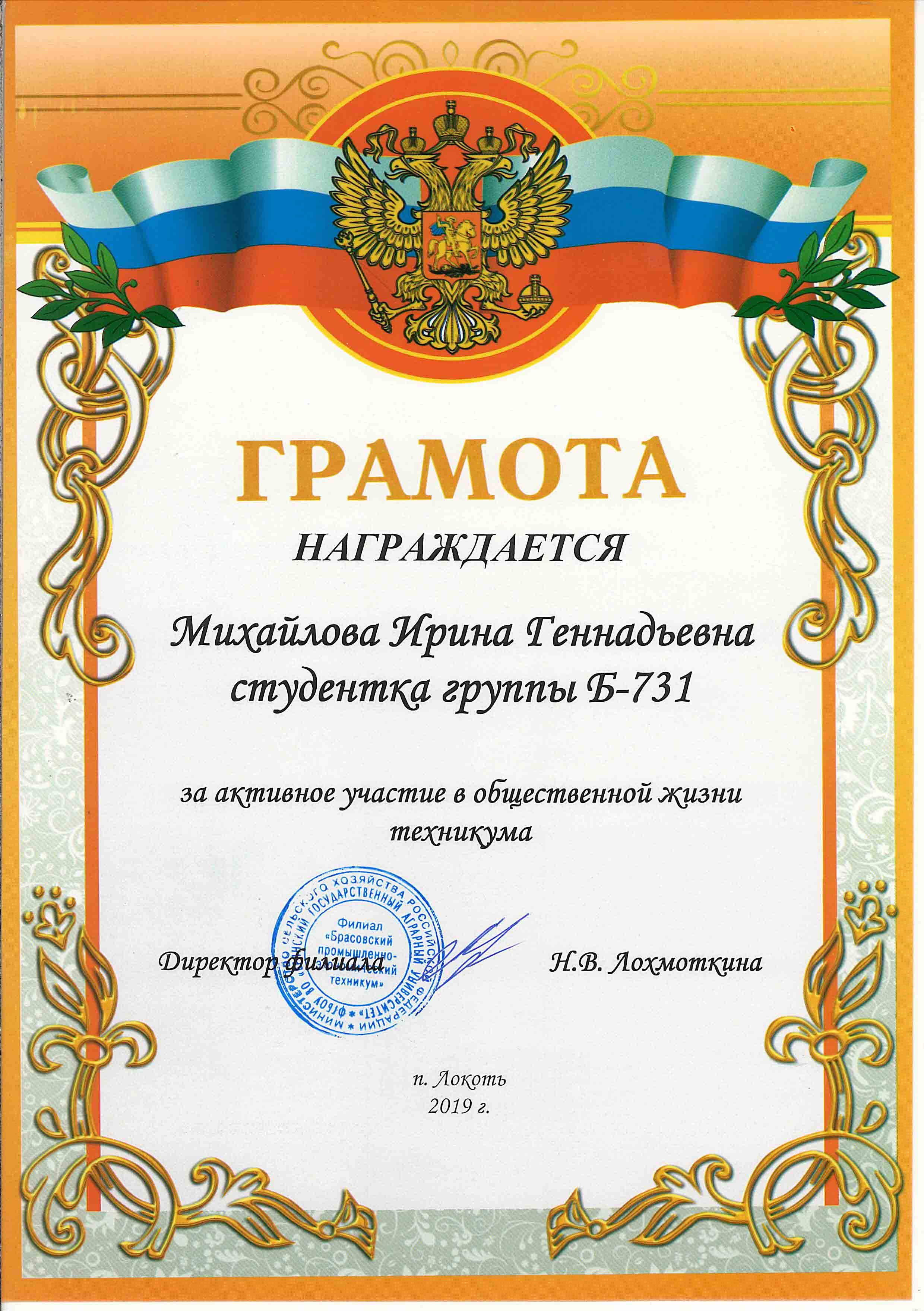 ЗА АКТИВНОЕ УЧАСТИЕ В ОБЩЕСТВЕННОЙ ЖИЗНИ ТЕХНИКУМА