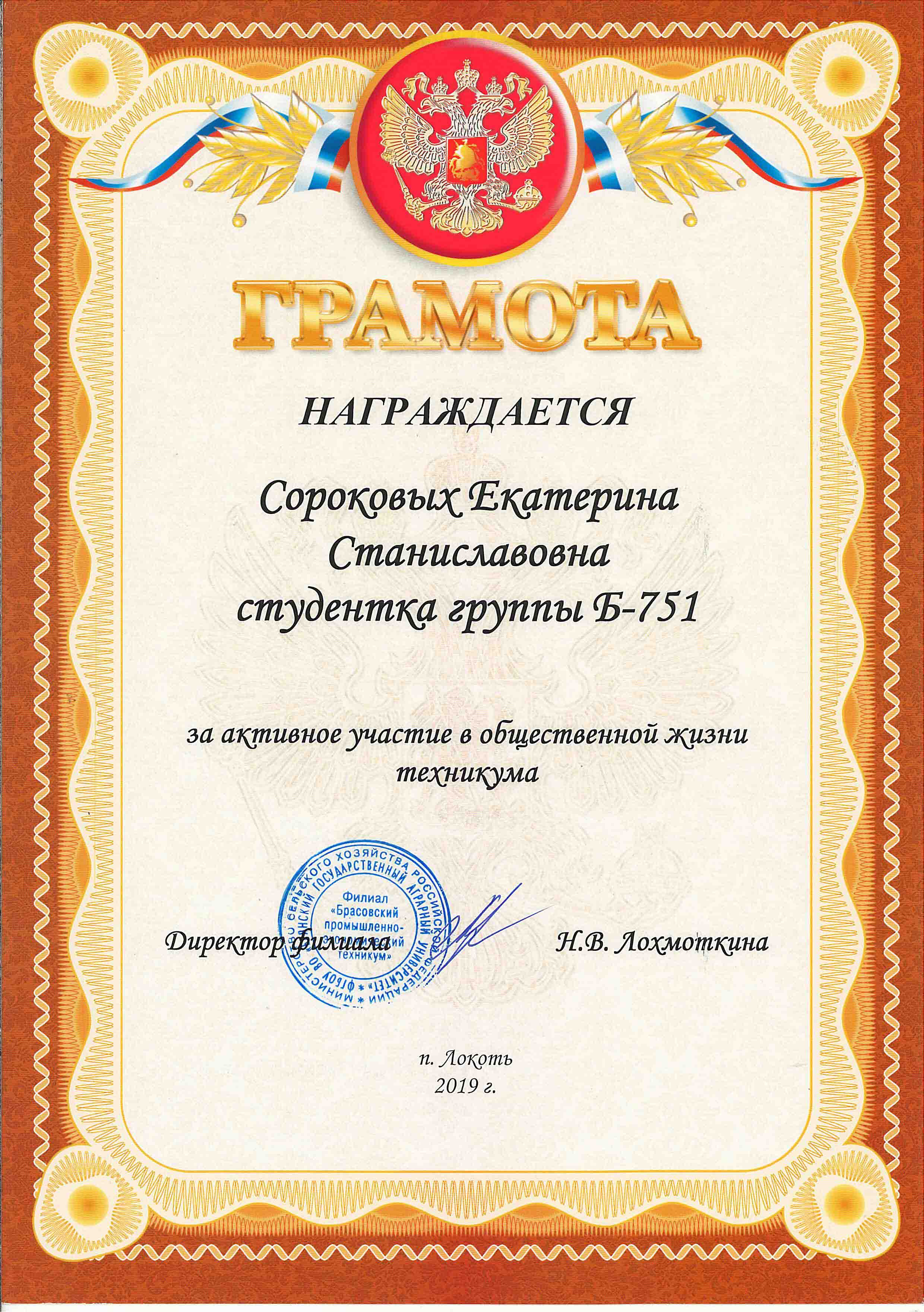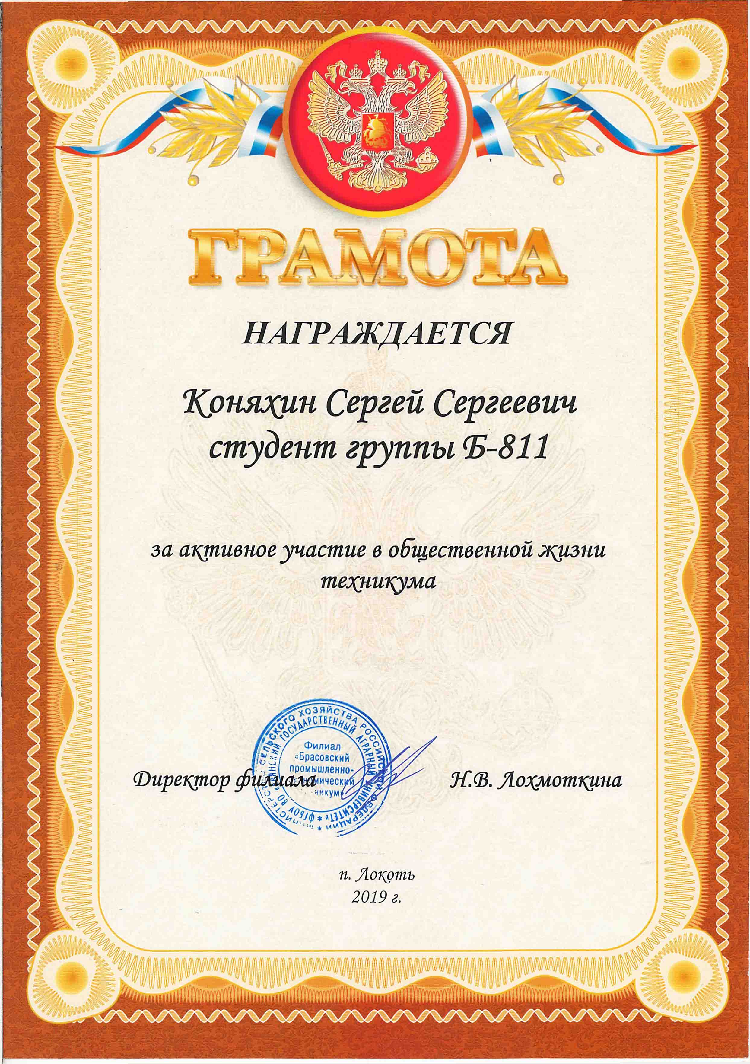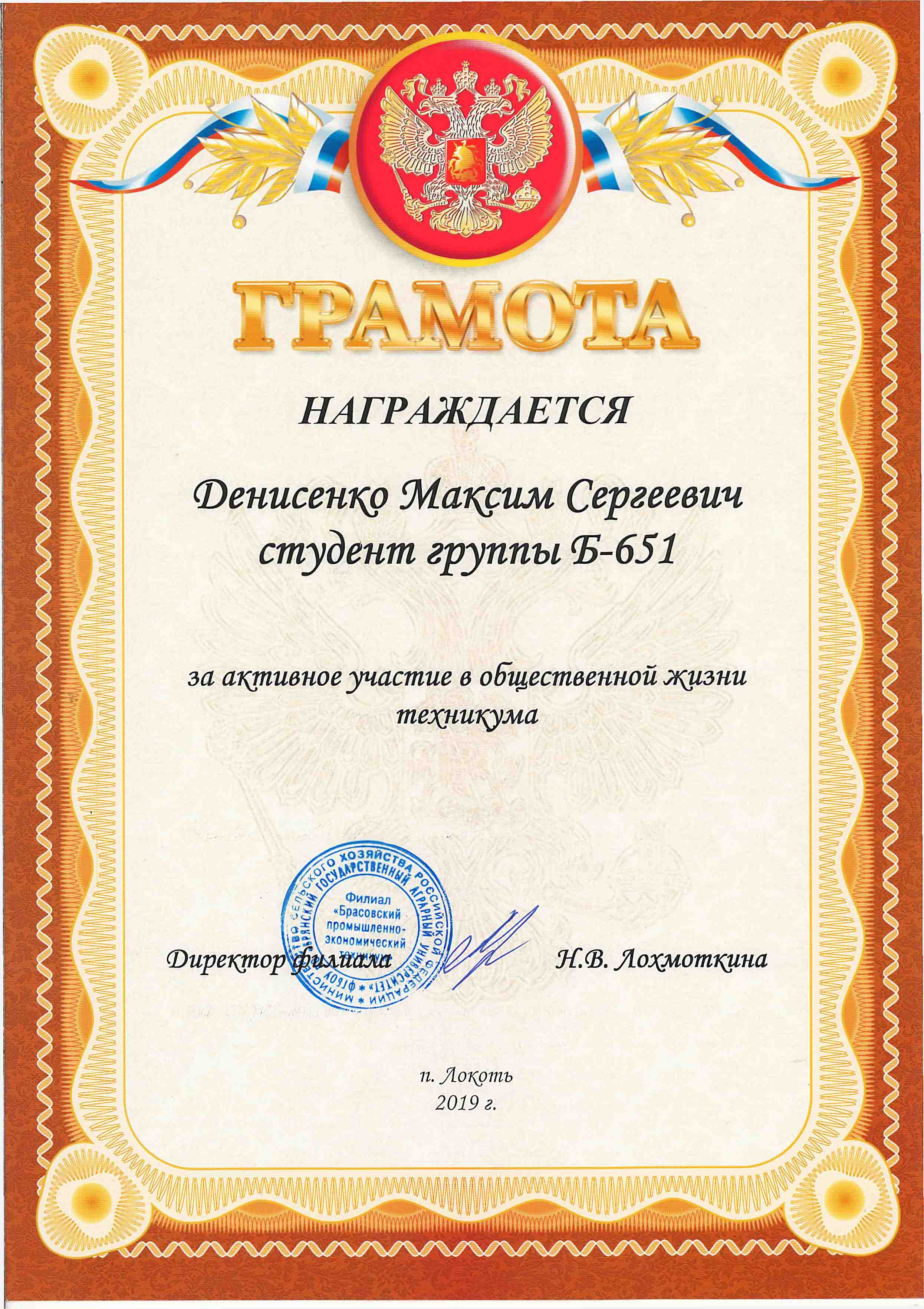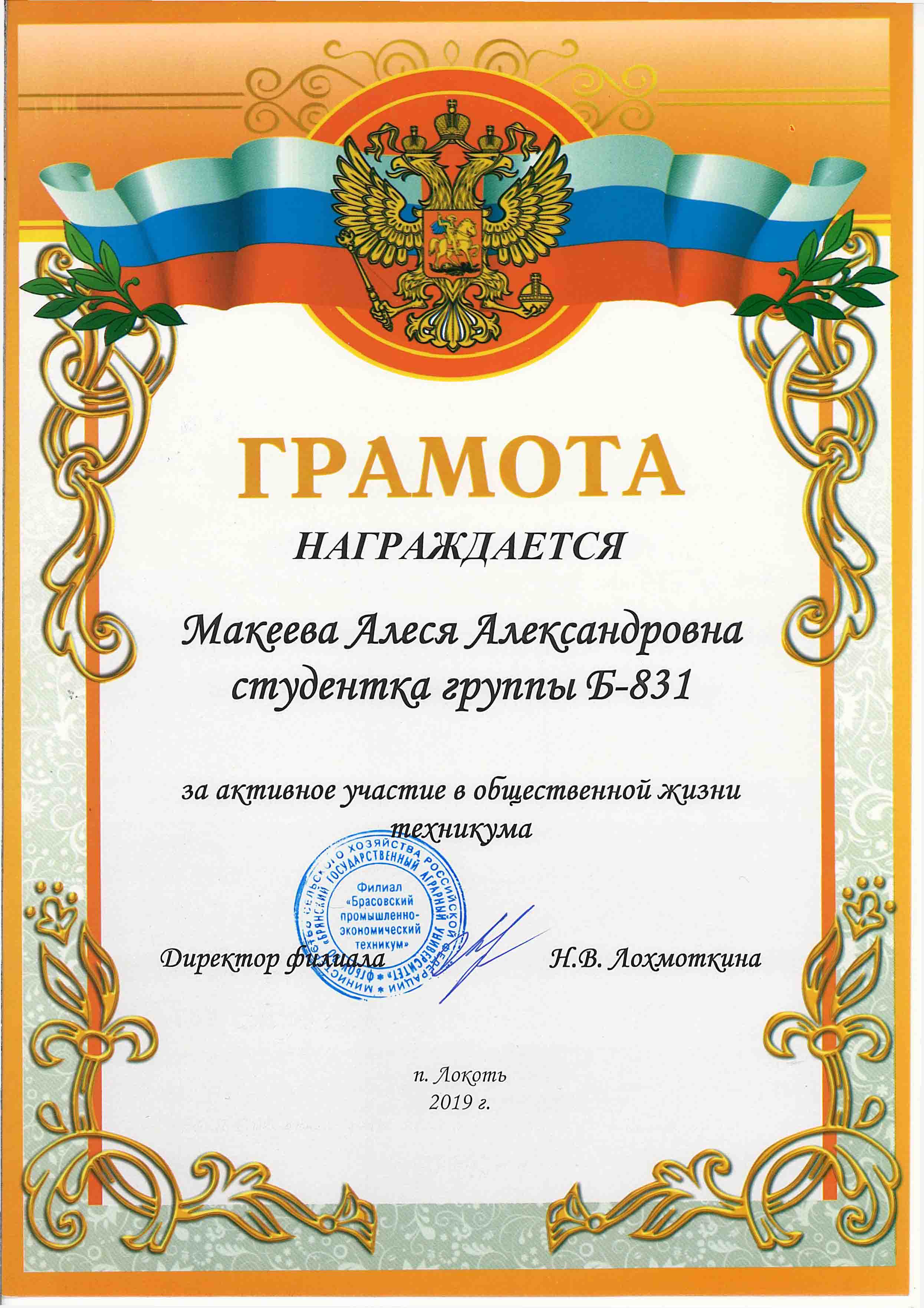 ЗА АКТИВНОЕ УЧАСТИЕ В ОБЩЕСТВЕННОЙ ЖИЗНИ ТЕХНИКУМА