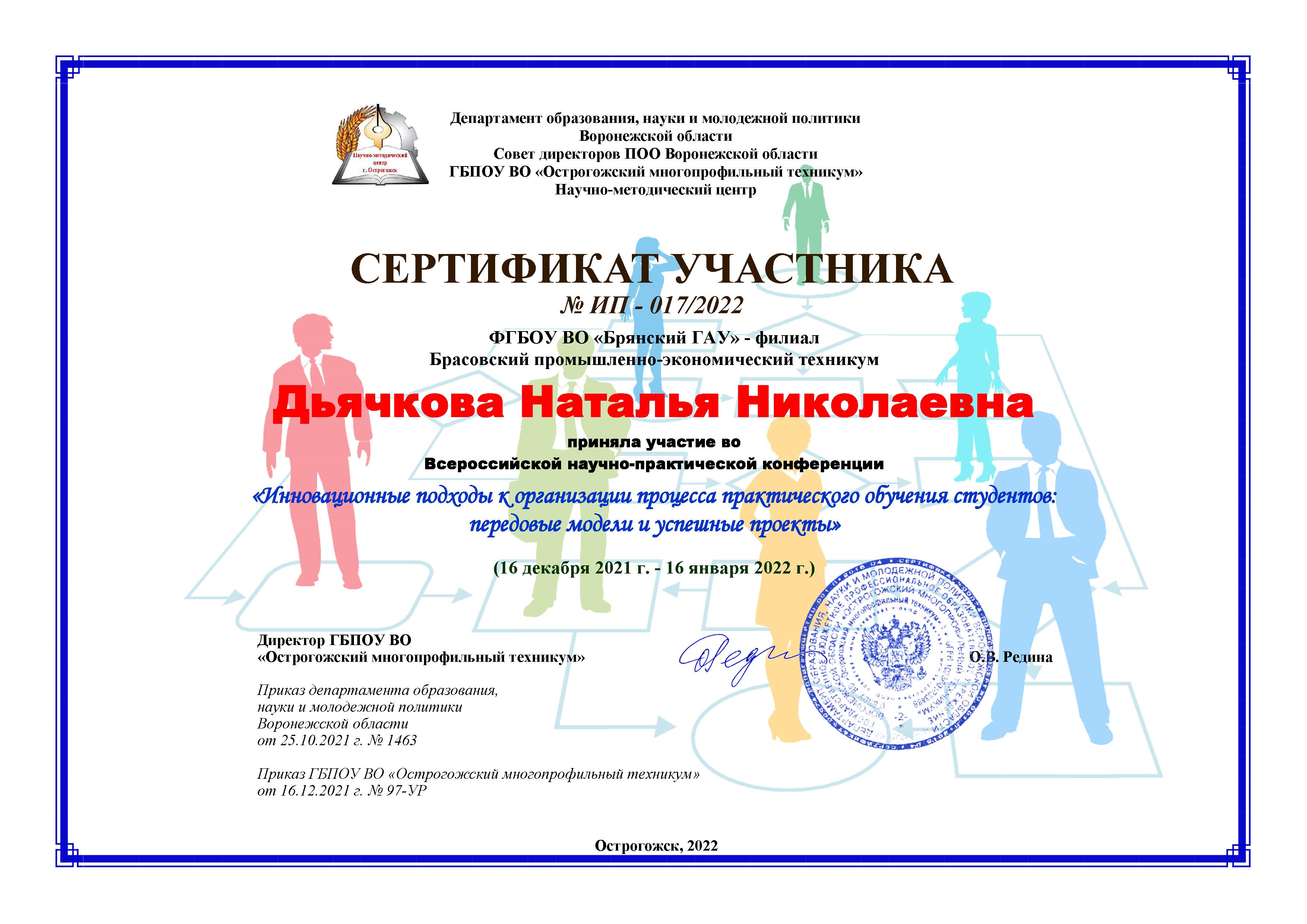 ВСЕРОССИЙСКАЯ НАУЧНО-ПРАКТИЧЕСКАЯ КОНФЕРЕНЦИЯ "ИННОВАЦИОННЫЕ ПОДХОДЫ К ОРГАНИЗАЦИИ ПРОЦЕССА ПРАКТИЧЕСКОГО ОБУЧЕНИЯ СТУДЕНТОВ: ПЕРЕДОВЫЕ МОДЕЛИ И УСПЕШНЫЕ ПРОЕКТЫ"