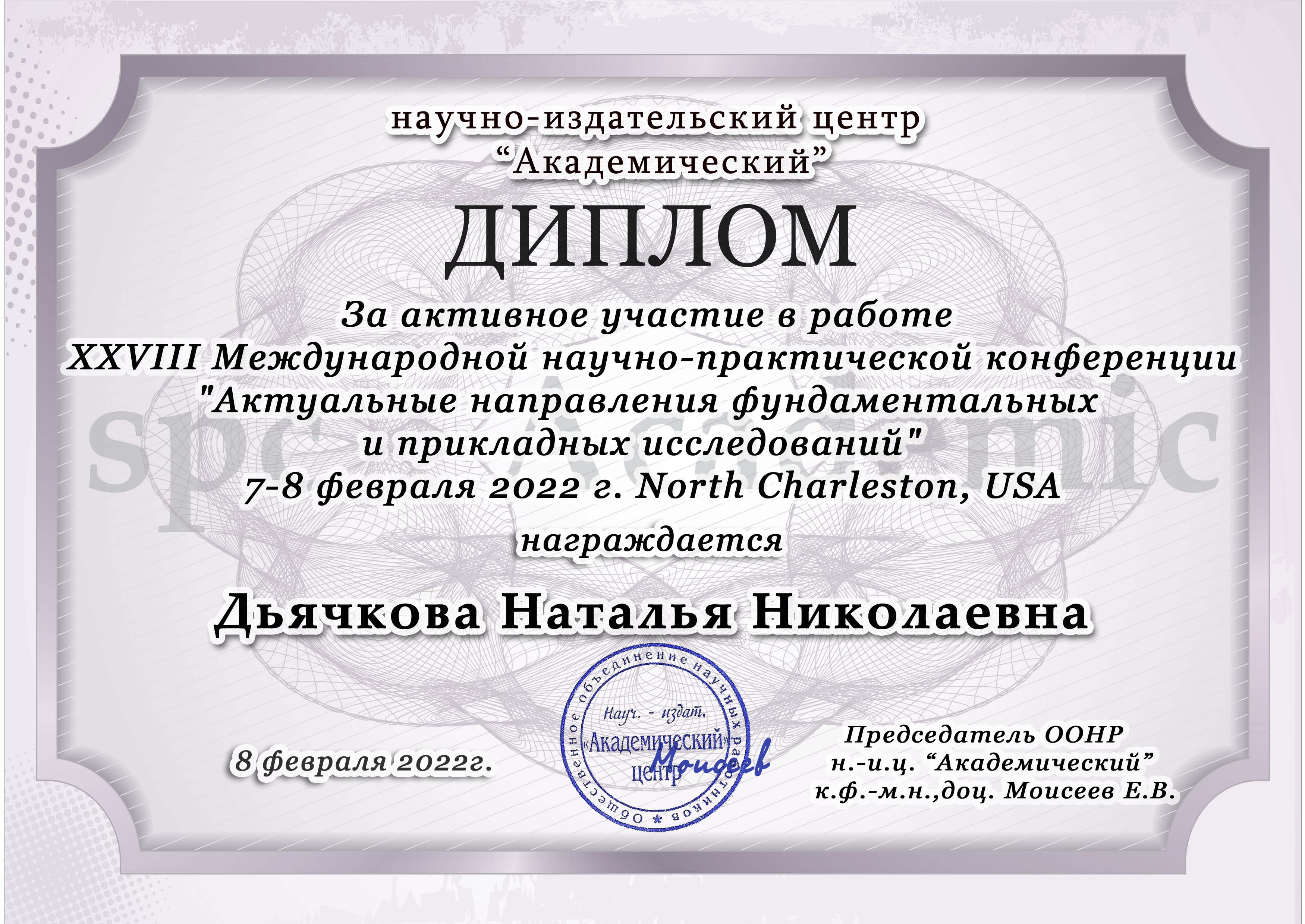 XXVIII МЕЖДУНАРОДНАЯ НАУЧНО-ПРАКТИЧЕСКАЯ КОНФЕРЕНЦИЯ "АКТУАЛЬНЫЕ НАПРАВЛЕНИЯ ФУНДАМЕНТАЛЬНЫХ И ПРИКЛАДНЫХ ИССЛЕДОВАНИЙ"