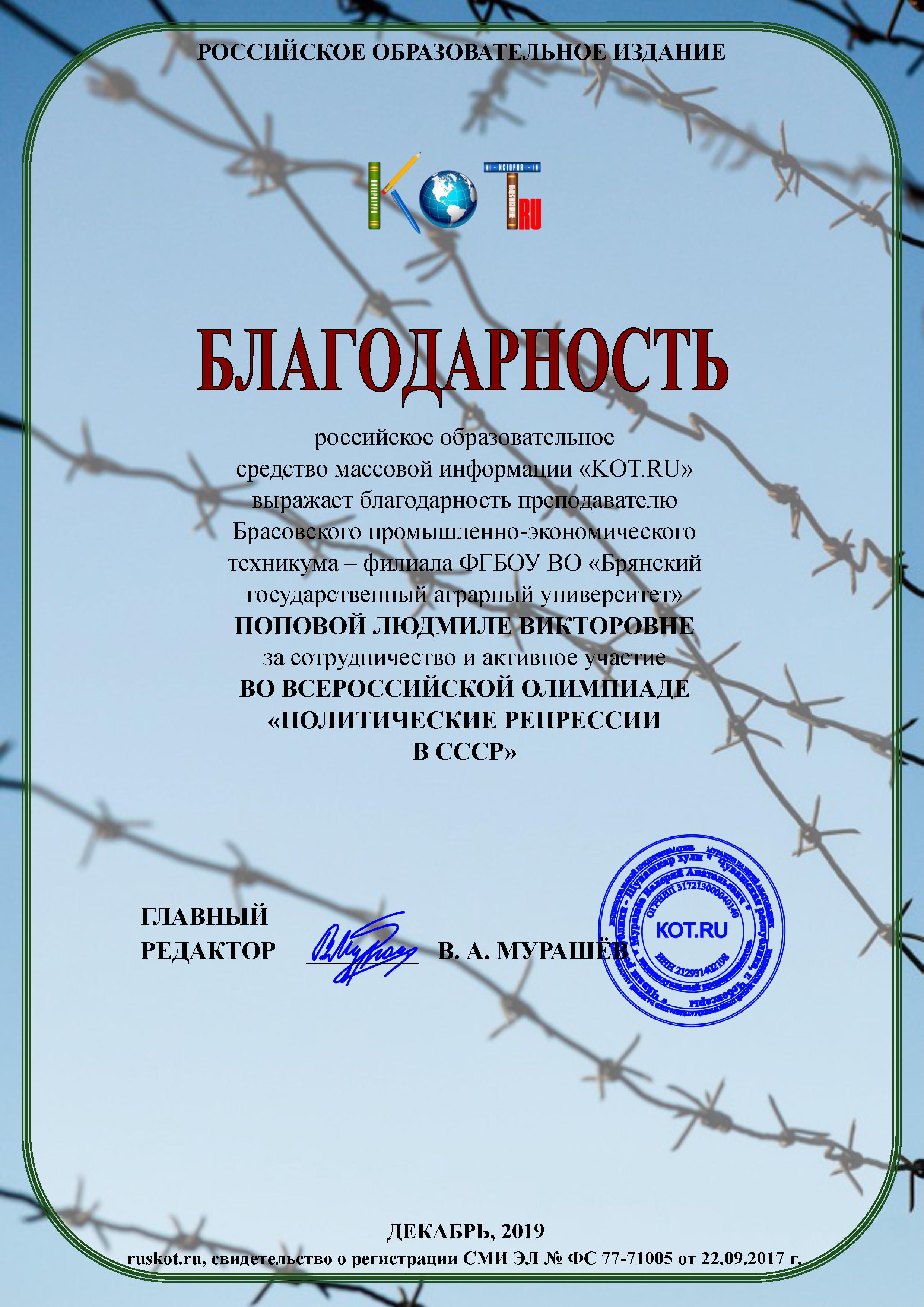 ВСЕРОССИЙСКАЯ ОЛИМПИАДА "ПОЛИТИЧЕСКИЕ РЕПРЕССИИ В СССР"