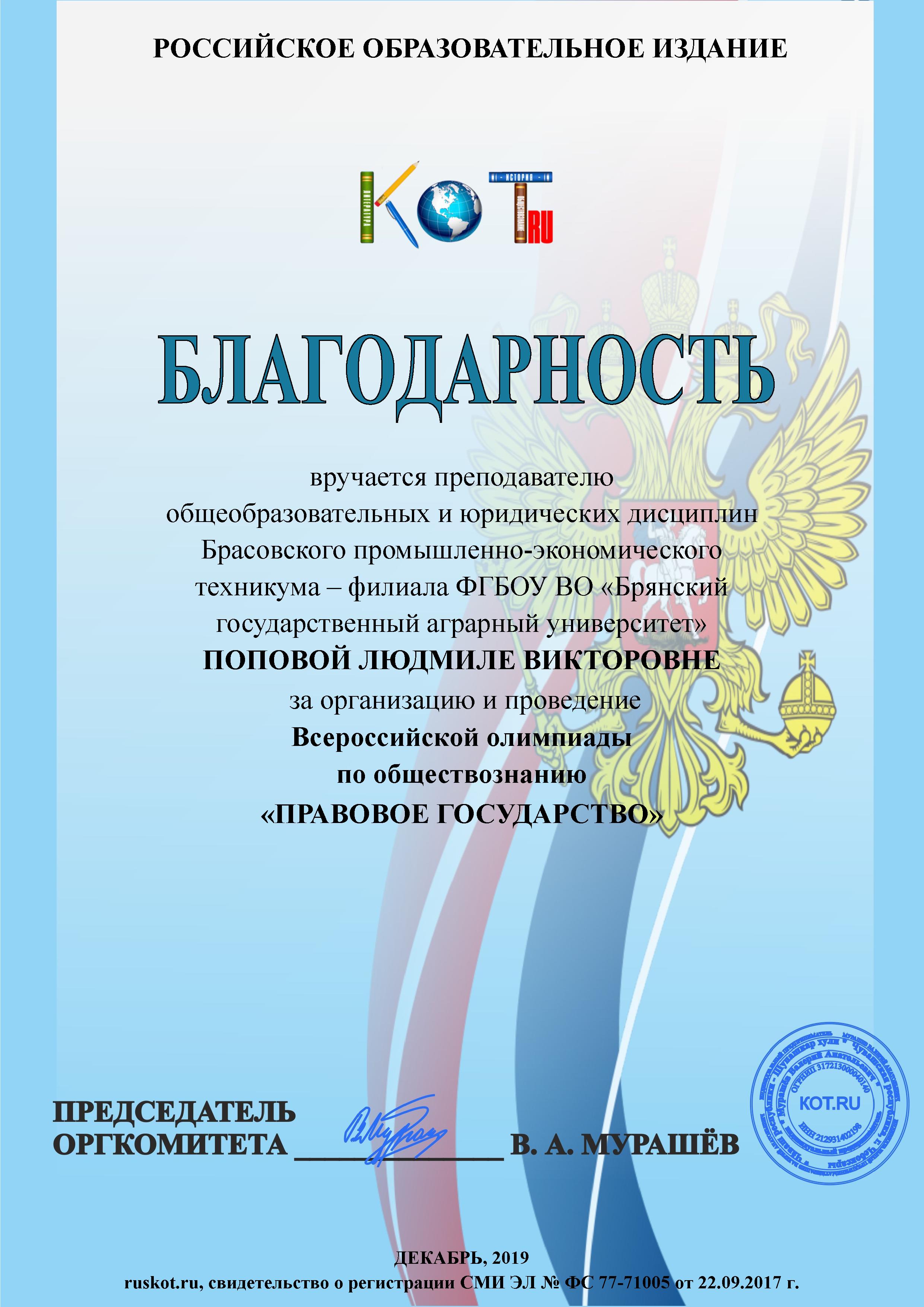 ВСЕРОССИЙСКАЯ ОЛИМПИАДА "ПРАВОВОЕ ГОСУДАРСТВО"