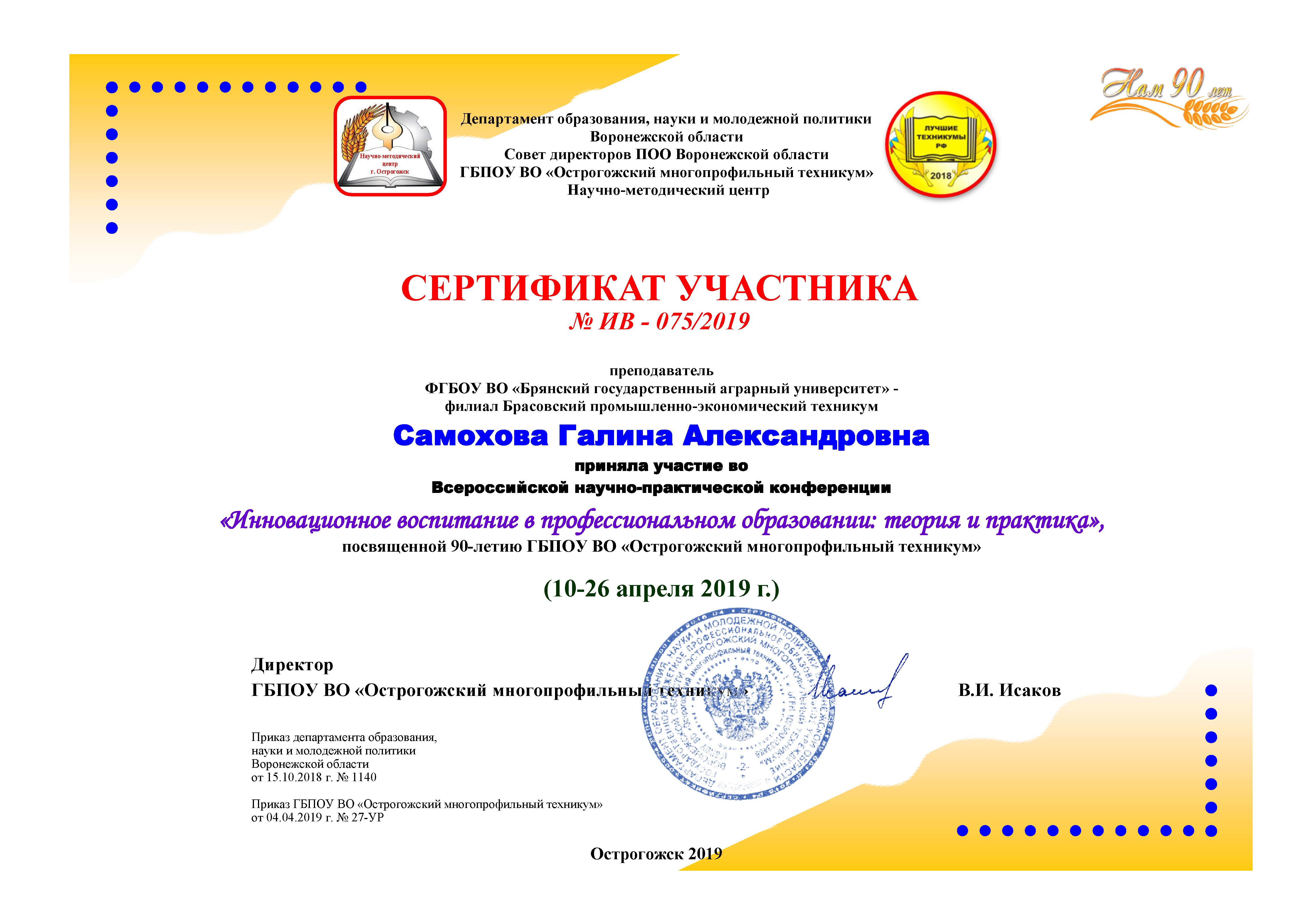 ВСЕРОССИЙСКАЯ НАУЧНО-ПРАКТИЧЕСКАЯ КОНФЕРЕНЦИЯ "ИННОВАЦИОННОЕ ВОСПИТАНИЕ В ПРОФЕССИОНАЛЬНОМ ОБРАЗОВАНИИ: ТЕОРИЯ И ПРАКТИКА"