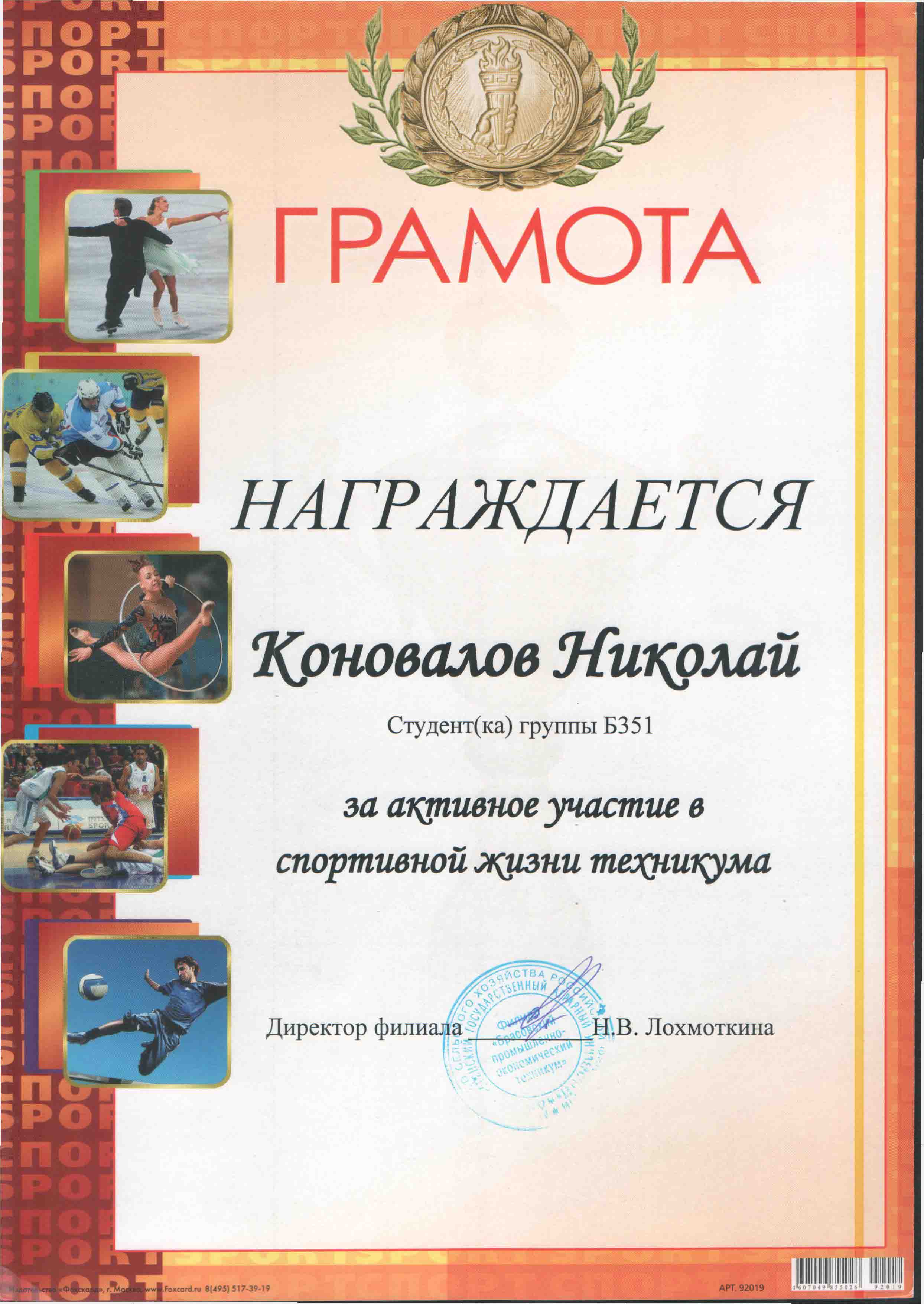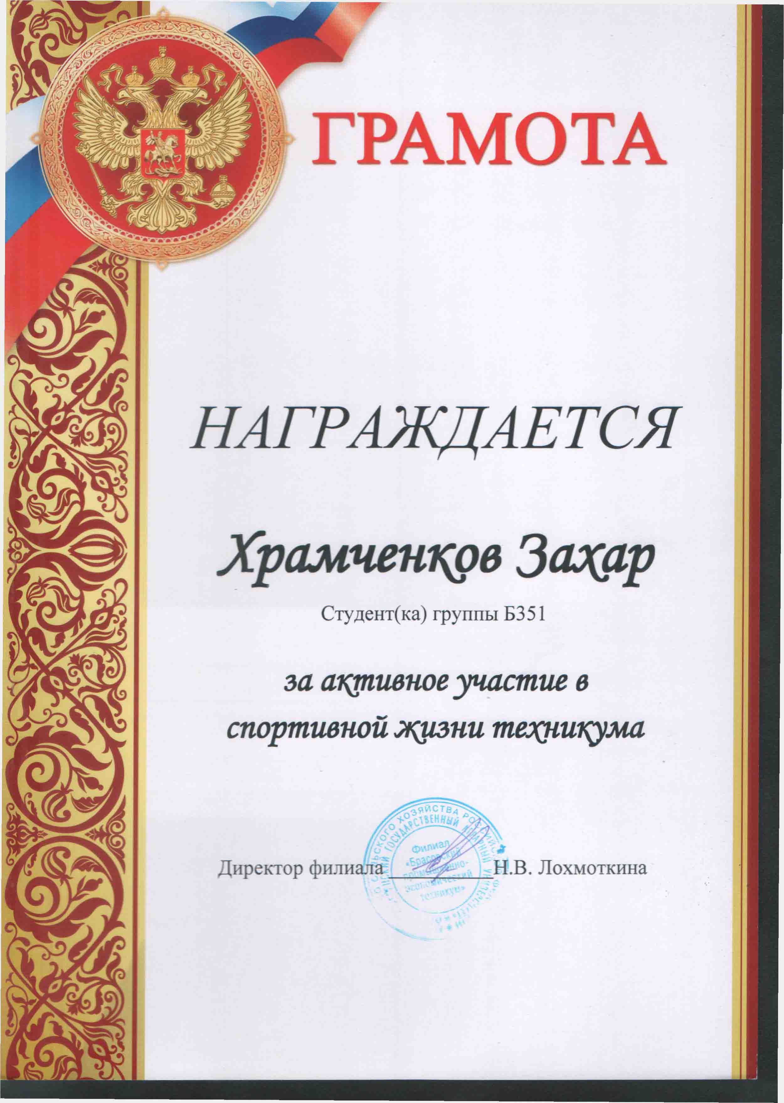 ЗА АКТИВНОЕ УЧАСТИЕ В СПОРТИВНОЙ ЖИЗНИ ТЕХНИКУМА