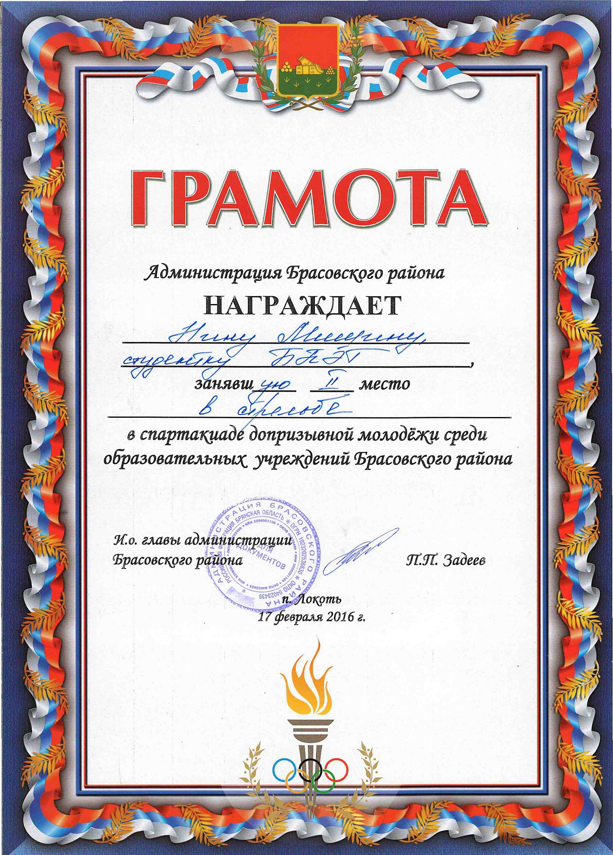 СПАРТАКИАДА ДОПРИЗЫВНОЙ МОЛОДЕЖИ СРЕДИ ОБРАЗОВАТЕЛЬНЫХ УЧРЕЖДЕНИЙ БРАСОВСКОГО РАЙОНА