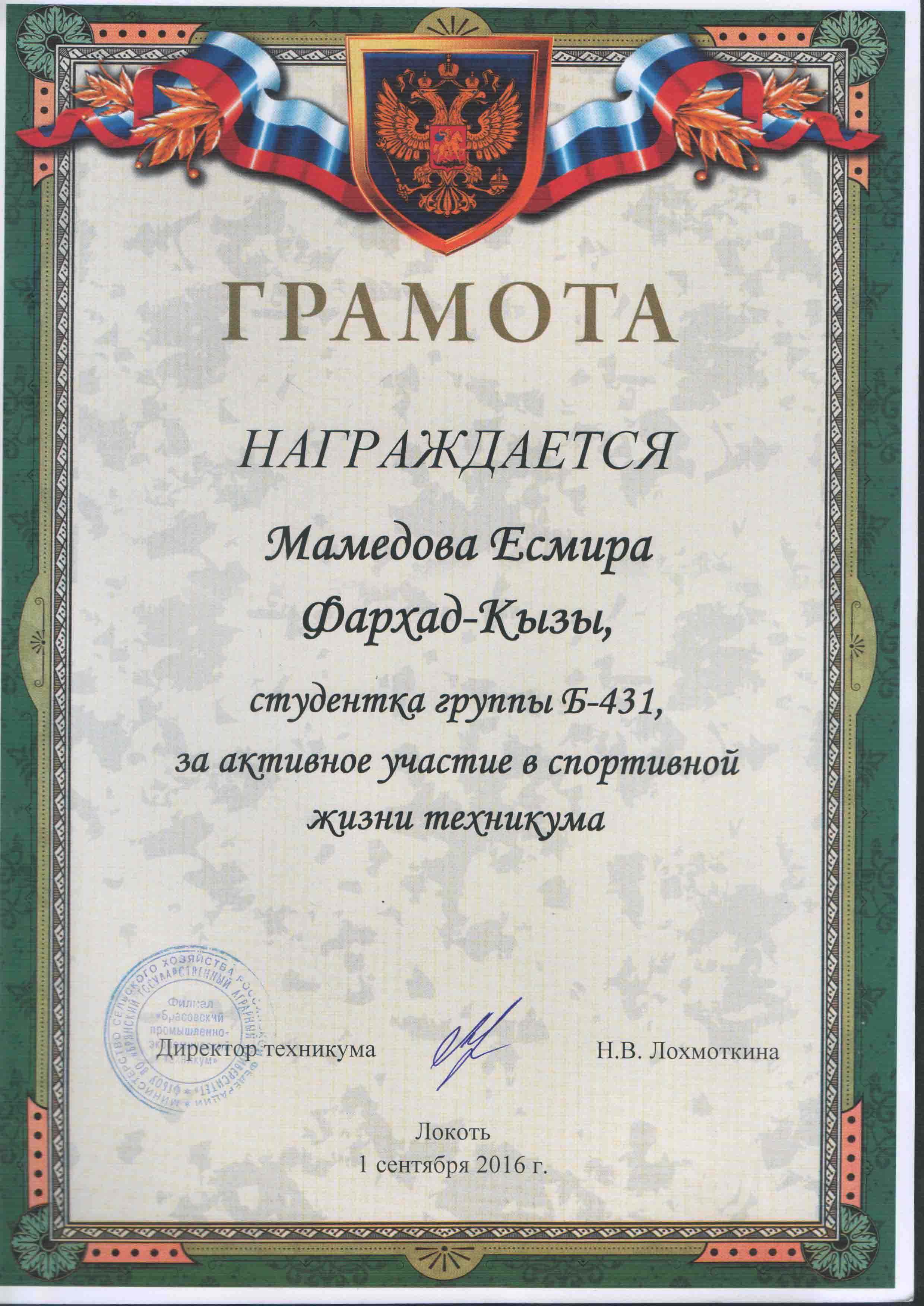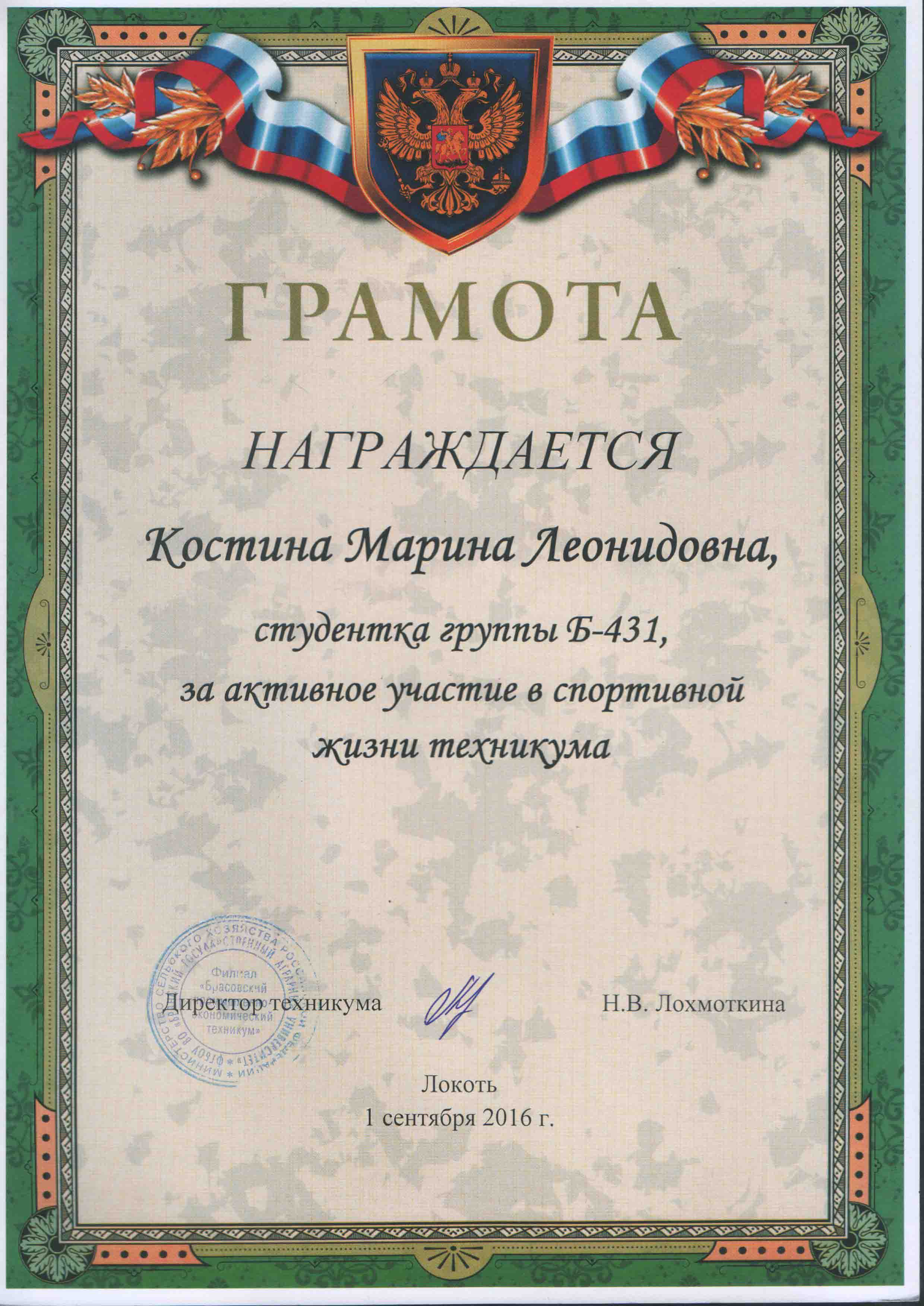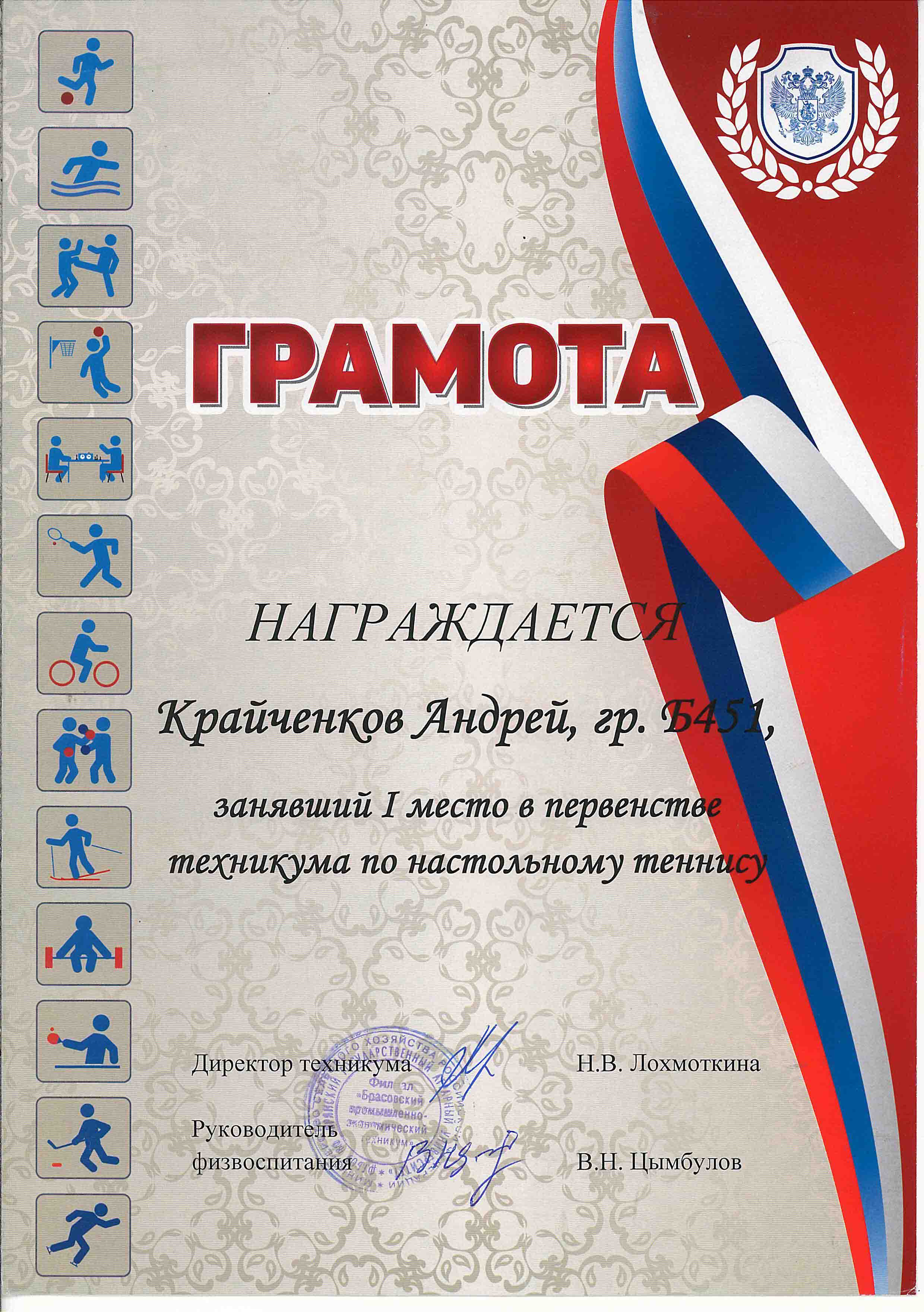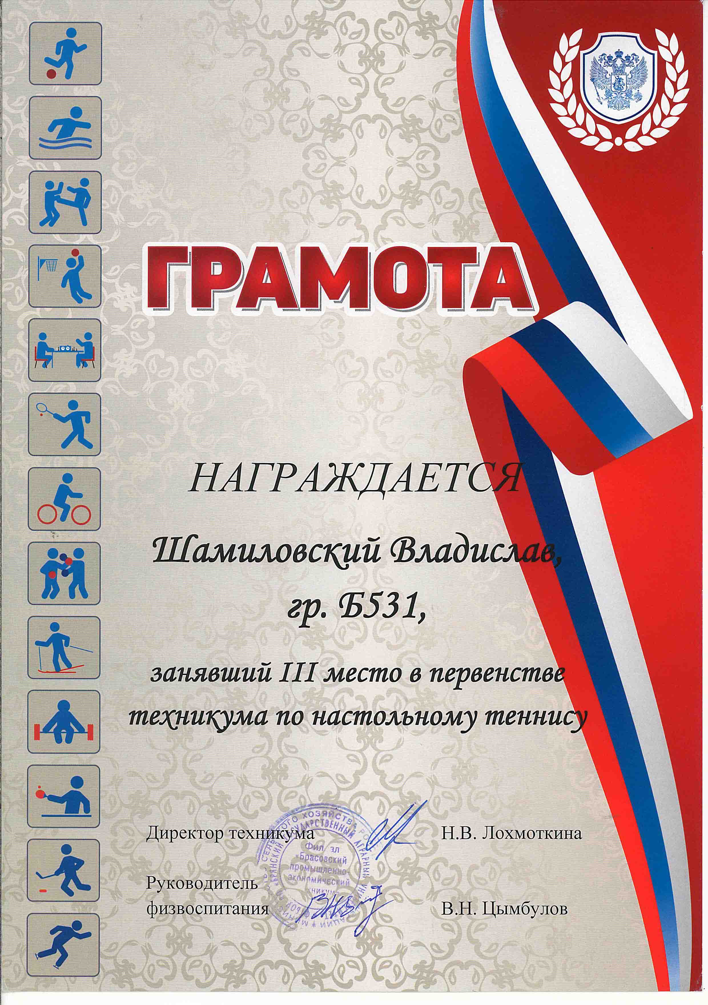ЗА АКТИВНОЕ УЧАСТИЕ В СПОРТИВНОЙ ЖИЗНИ ТЕХНИКУМА
