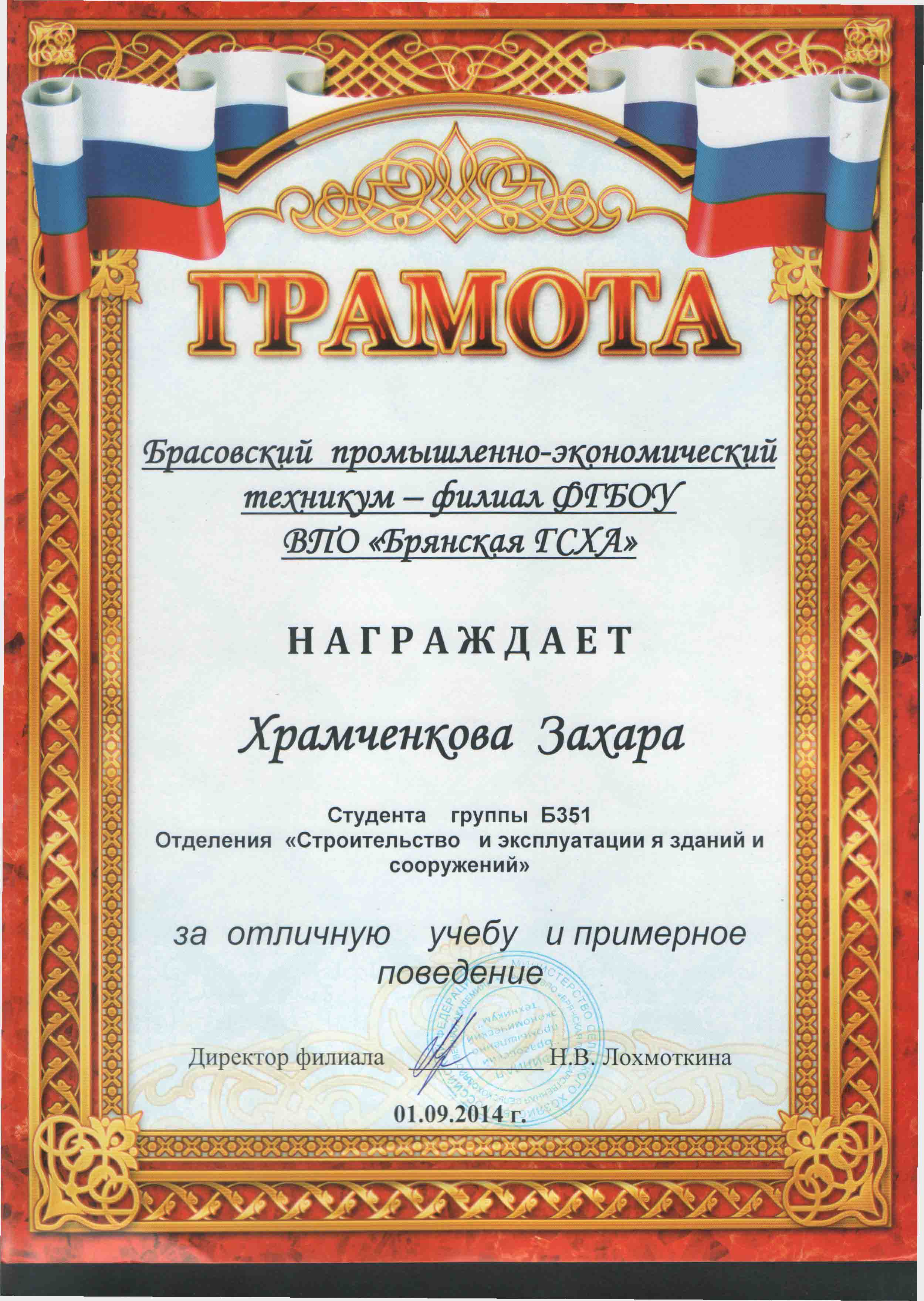 ЗА ОТЛИЧНУЮ УЧЕБУ И ПРИМЕРНОЕ ПОВЕДЕНИЕ