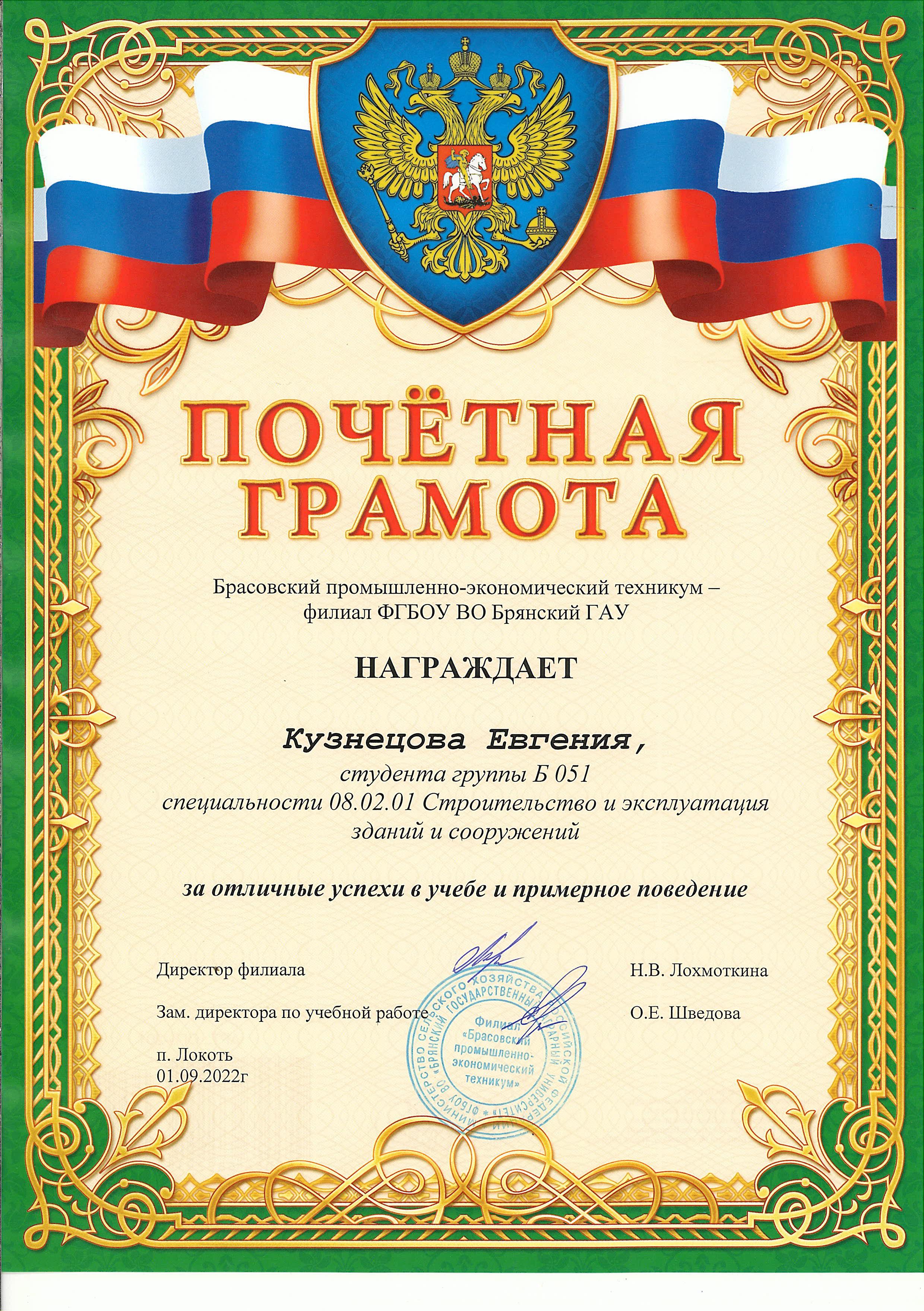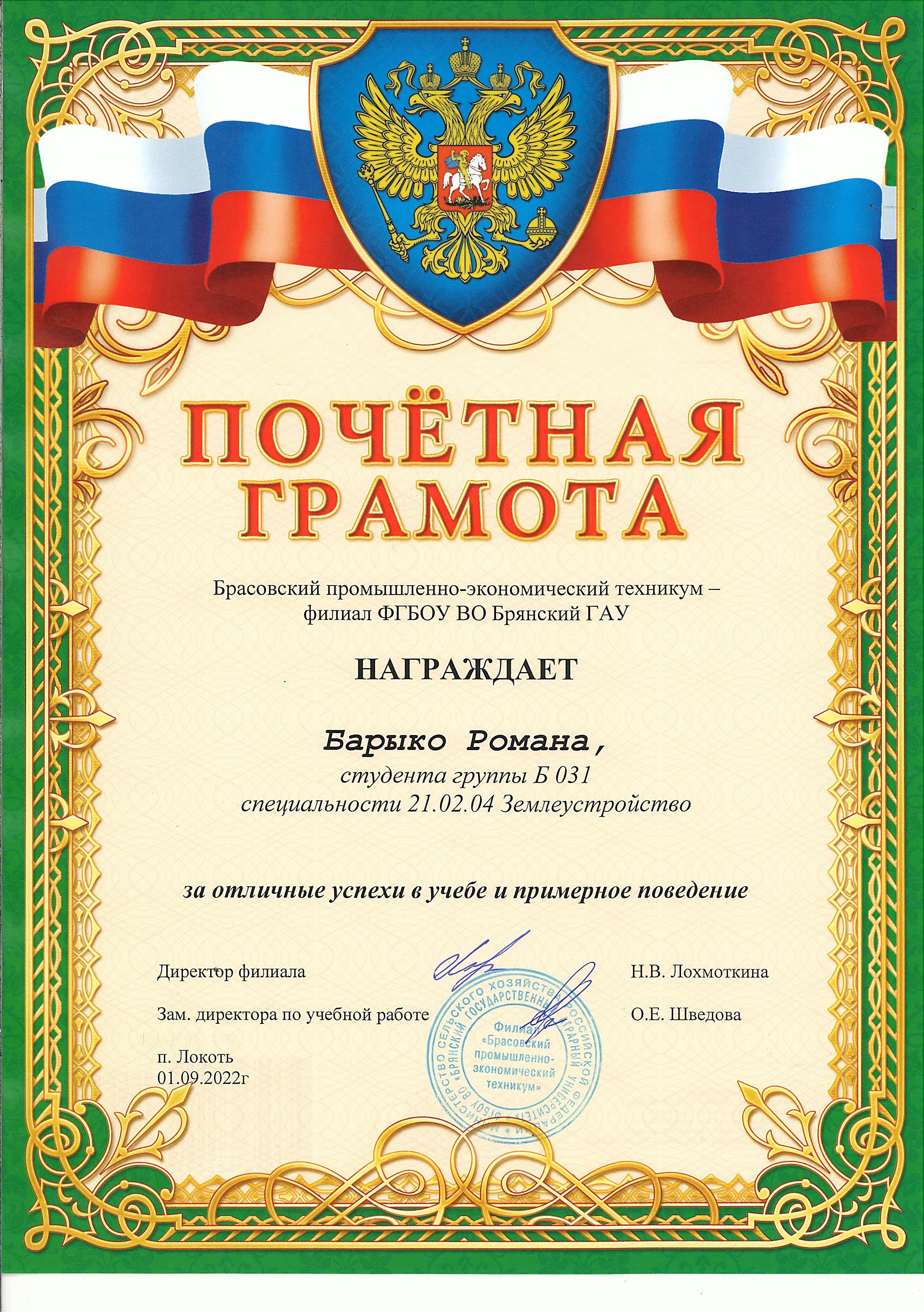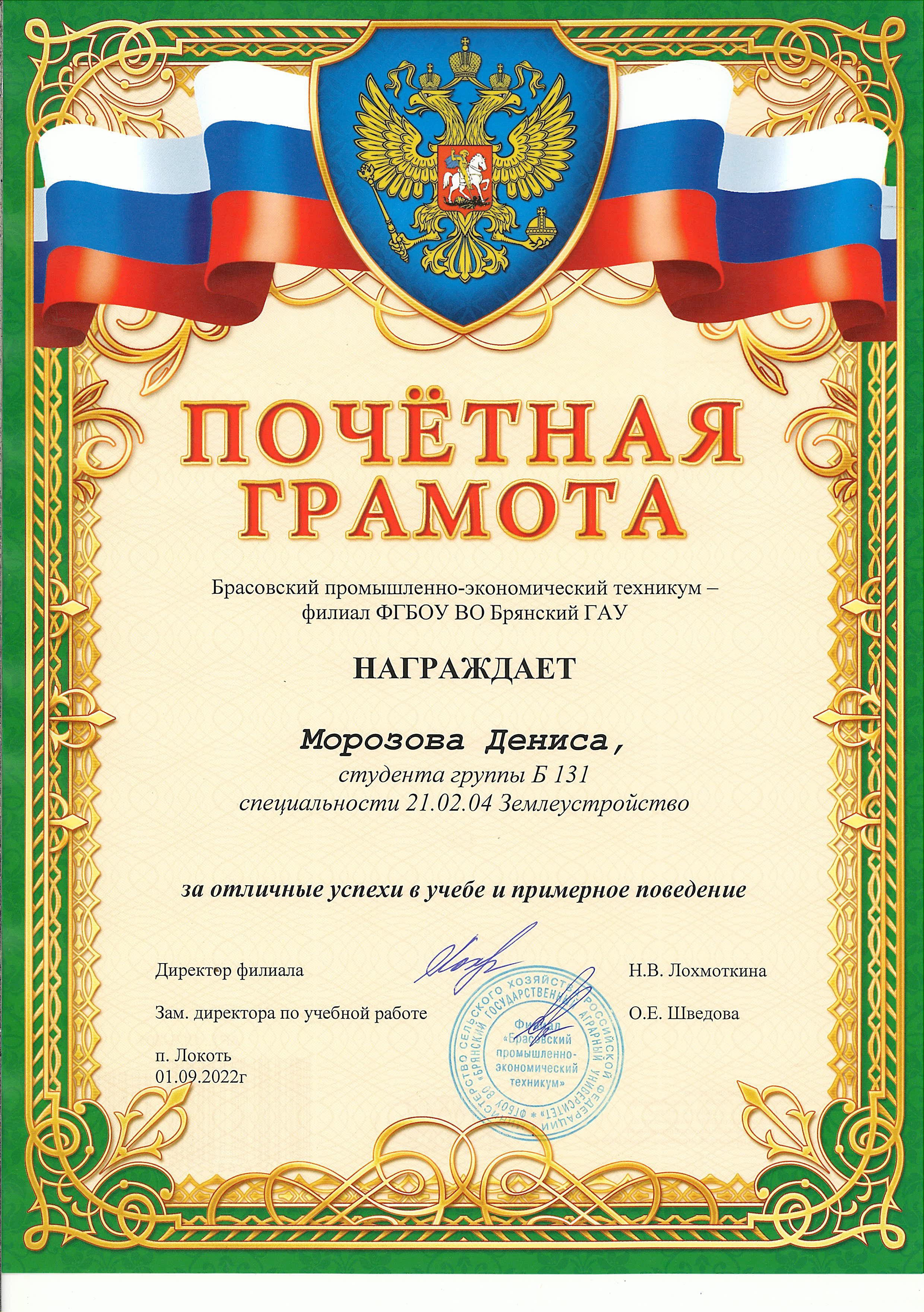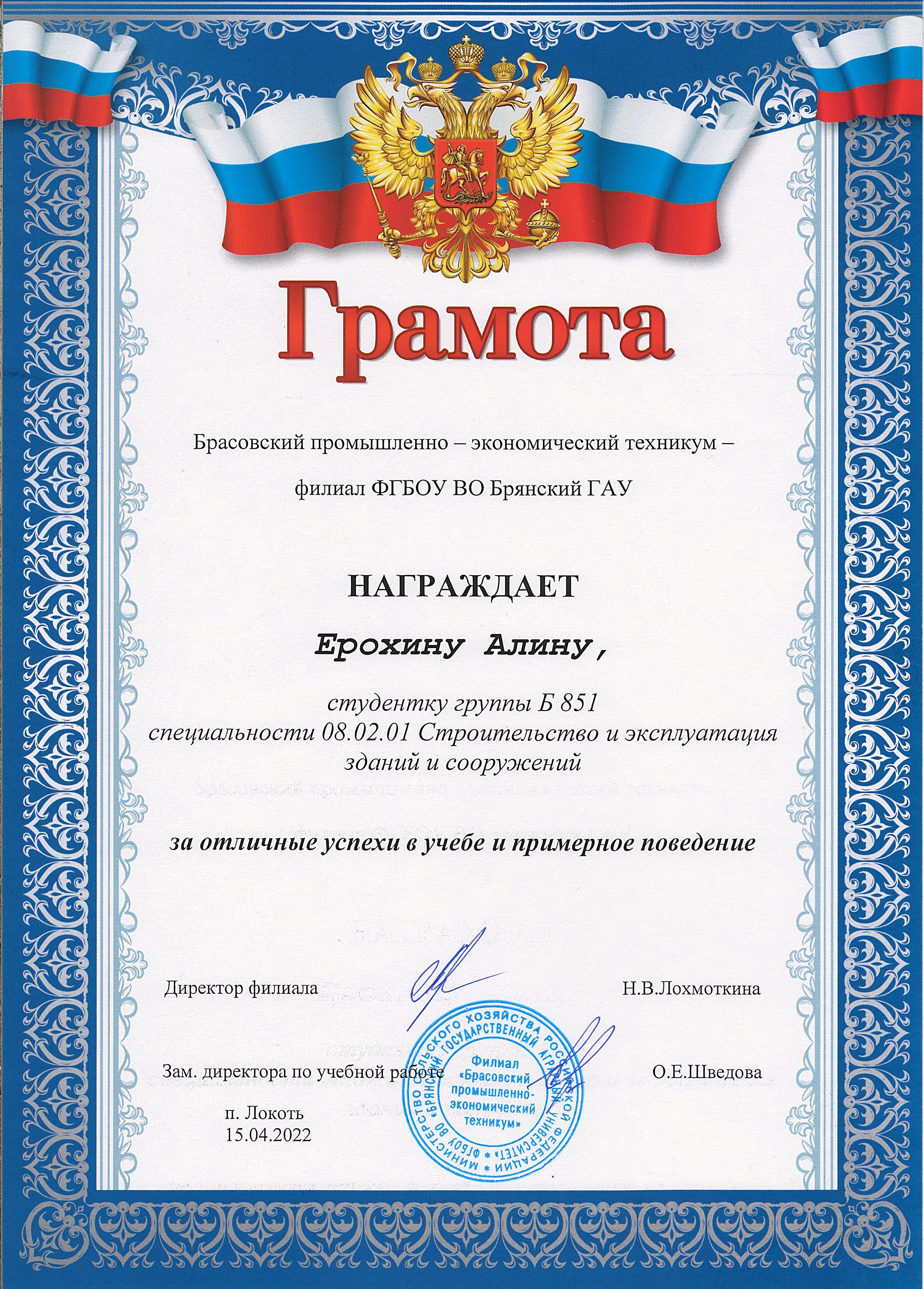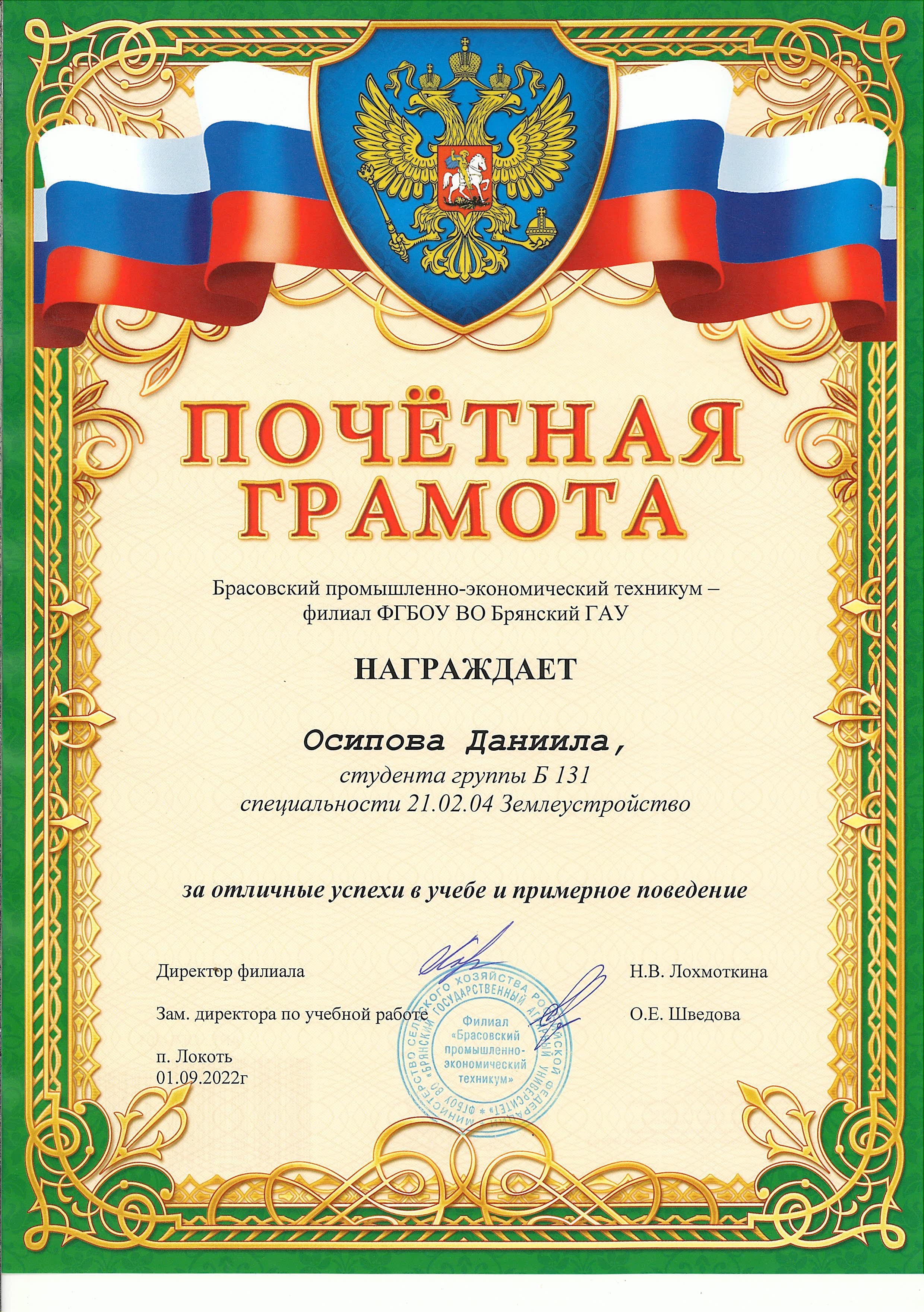 ЗА ОТЛИЧНЫЕ УСПЕХИ В УЧЕБЕ И ПРИМЕРНОЕ ПОВЕДЕНИЕ