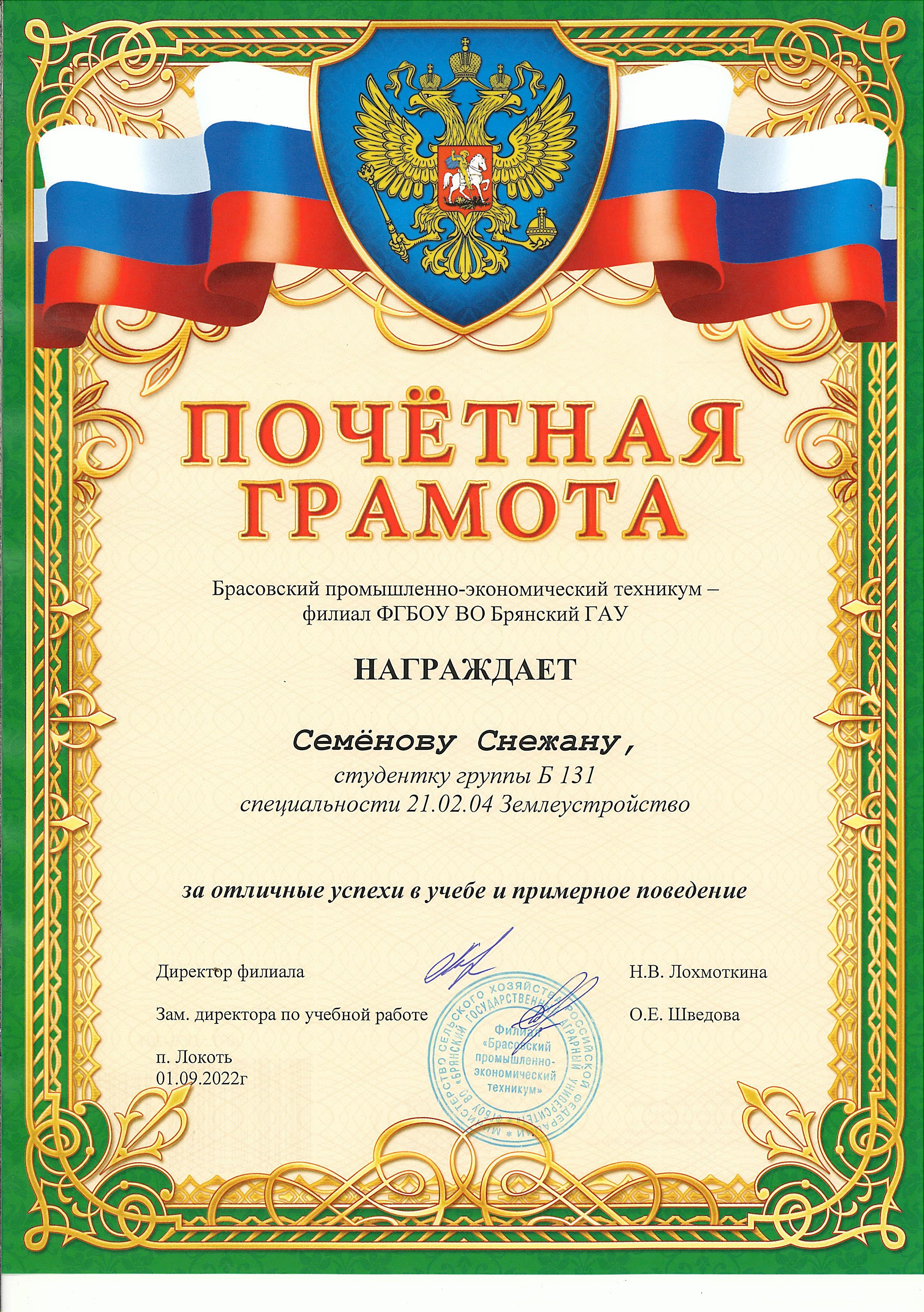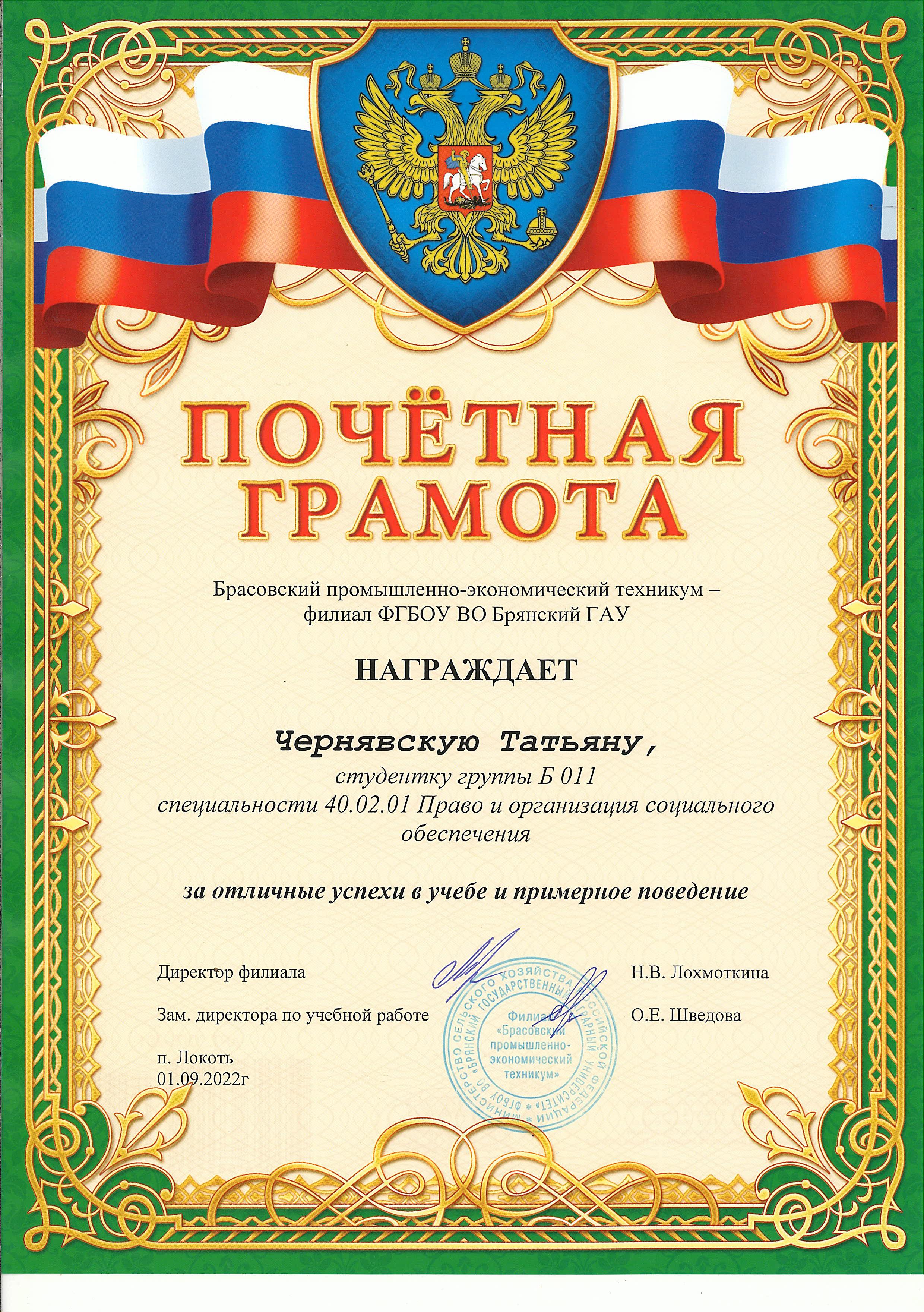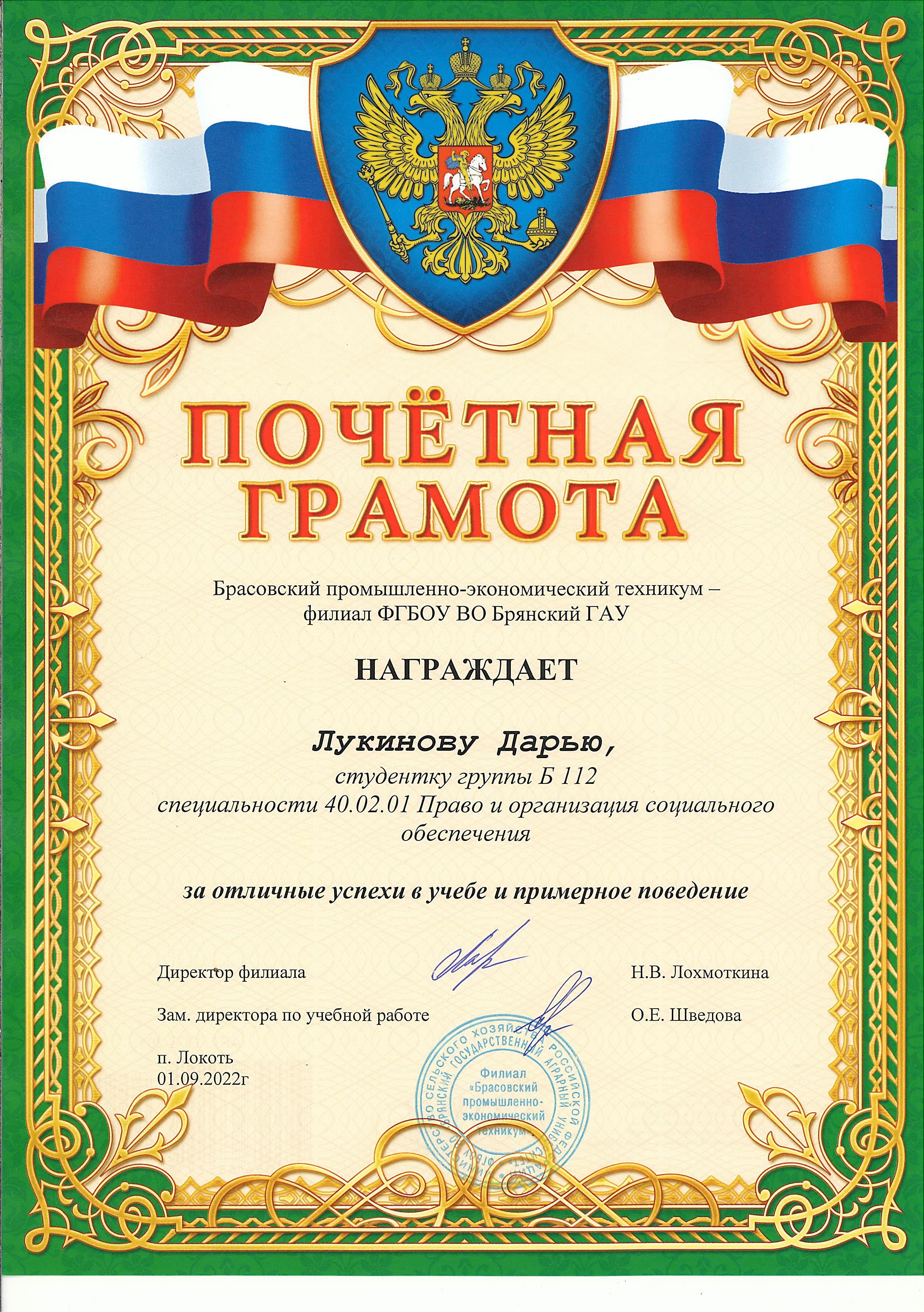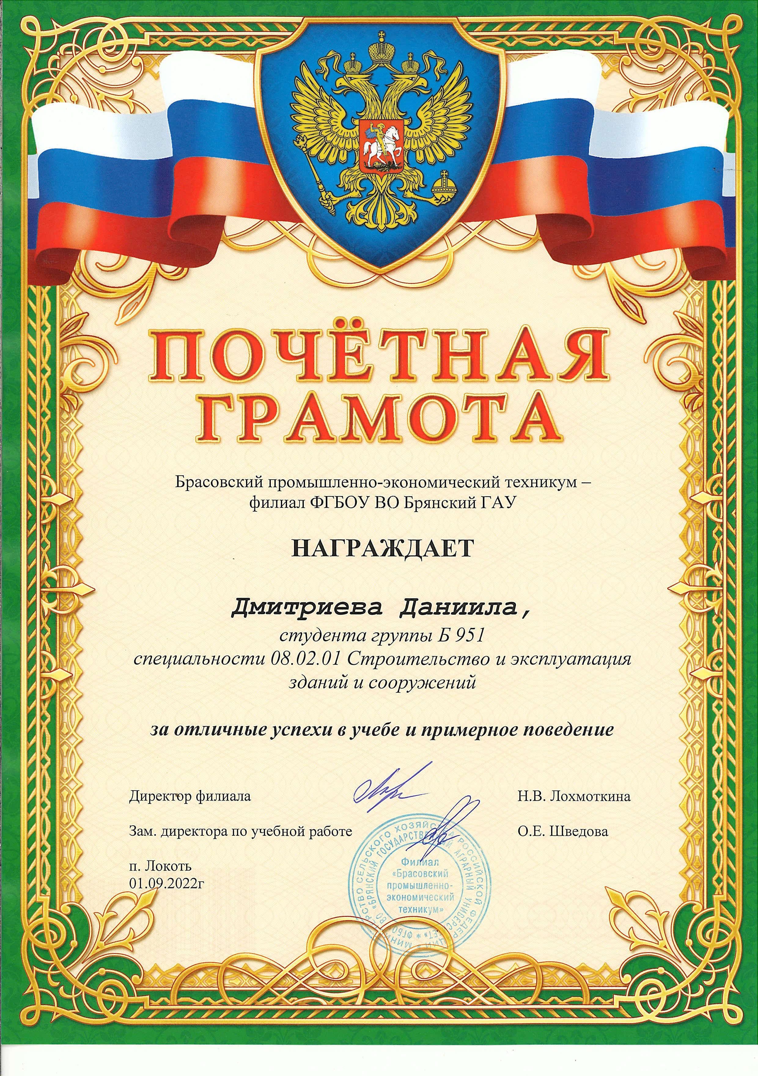 ЗА ОТЛИЧНЫЕ УСПЕХИ В УЧЕБЕ И ПРИМЕРНОЕ ПОВЕДЕНИЕ