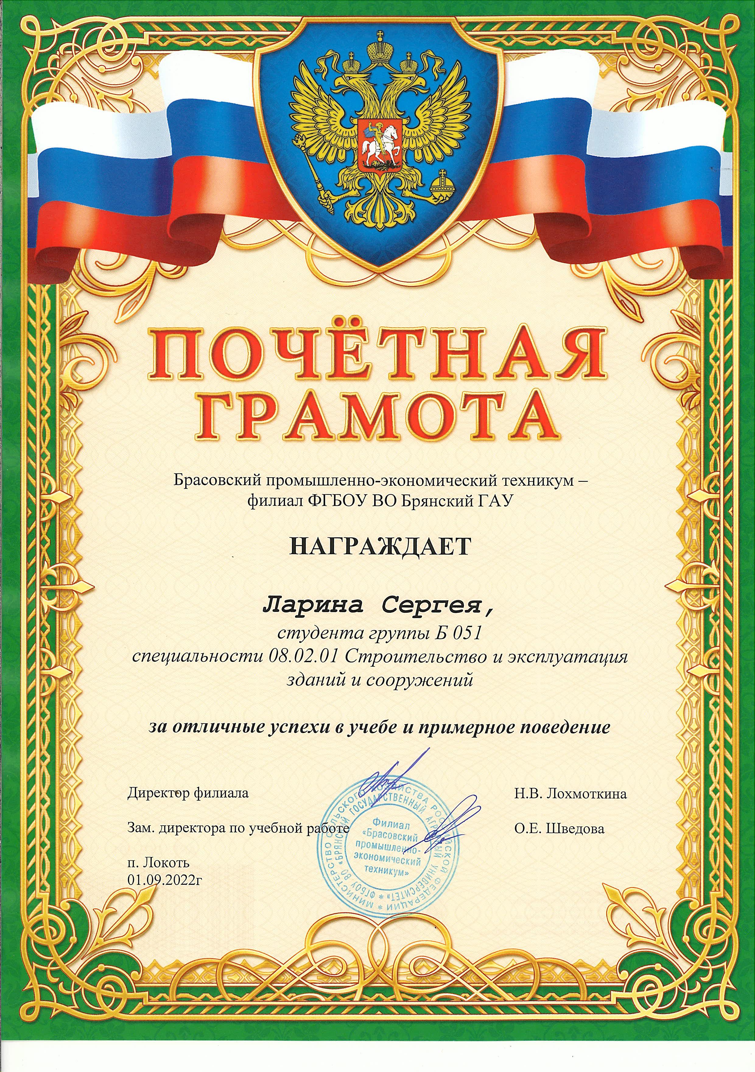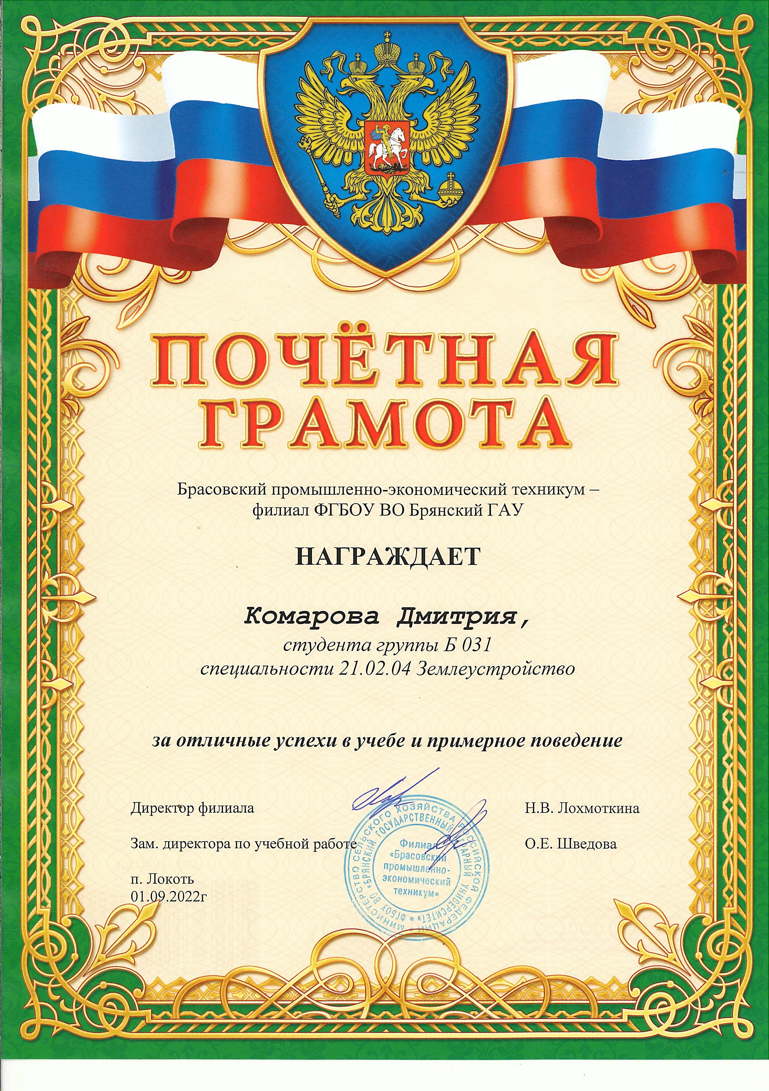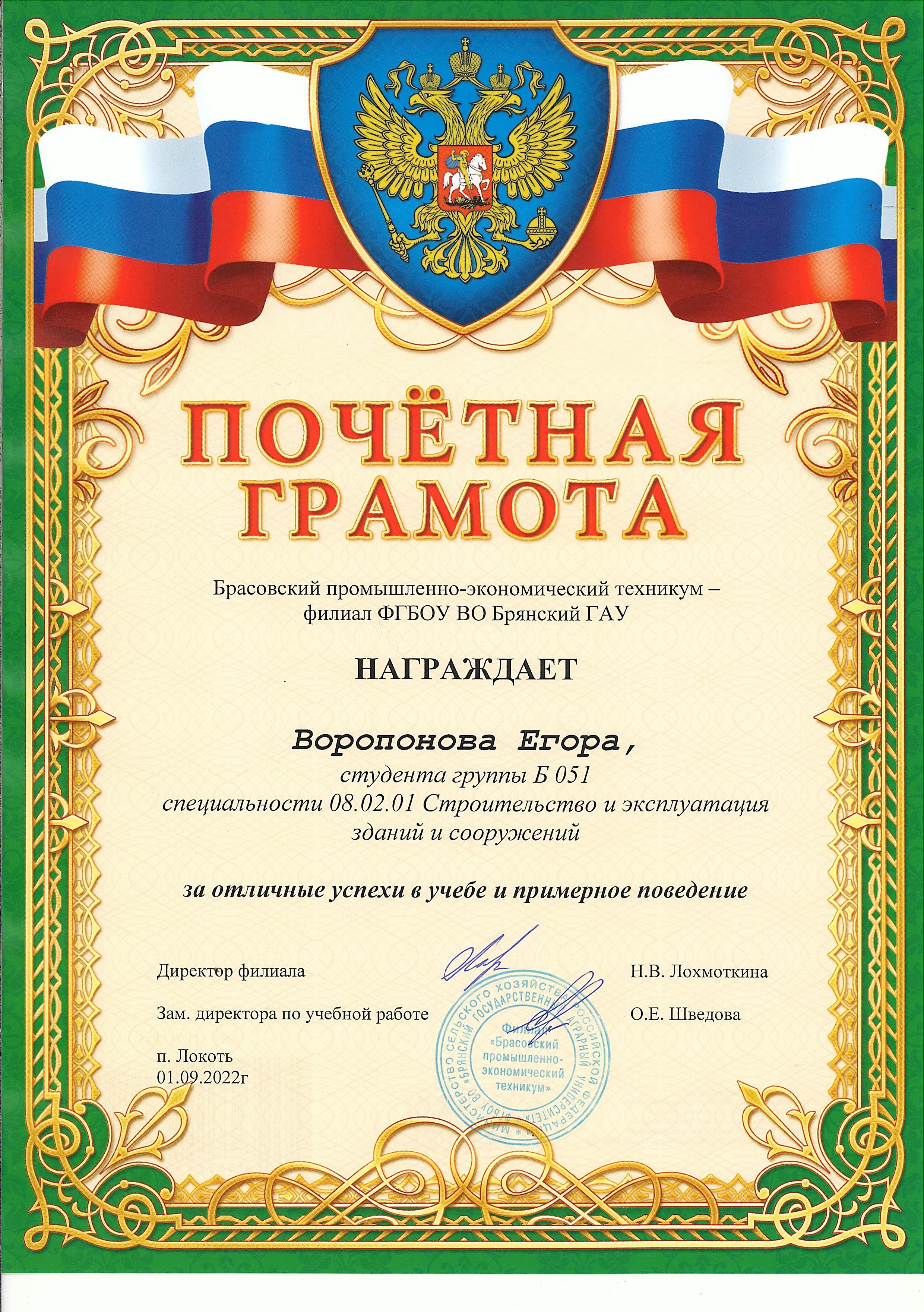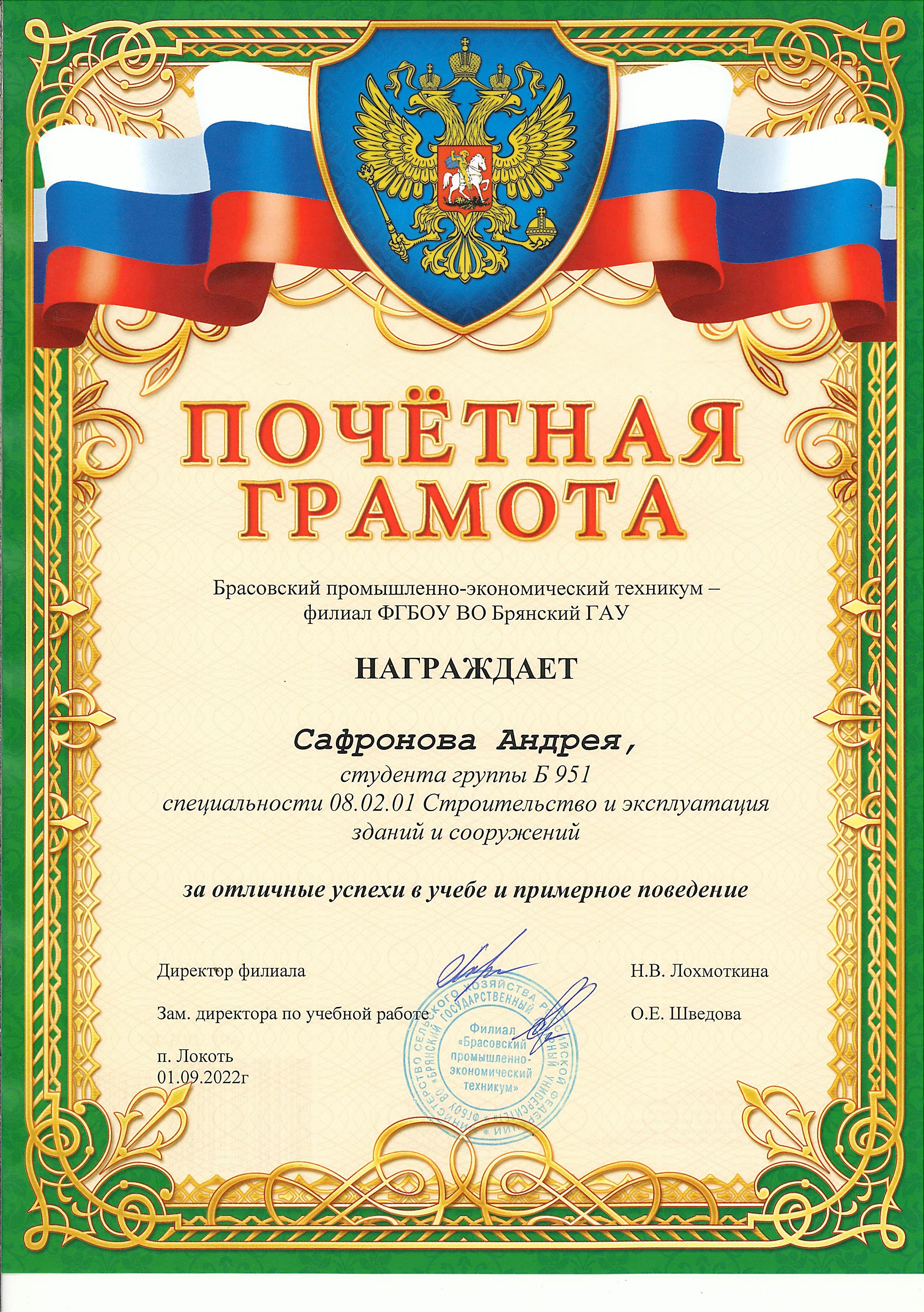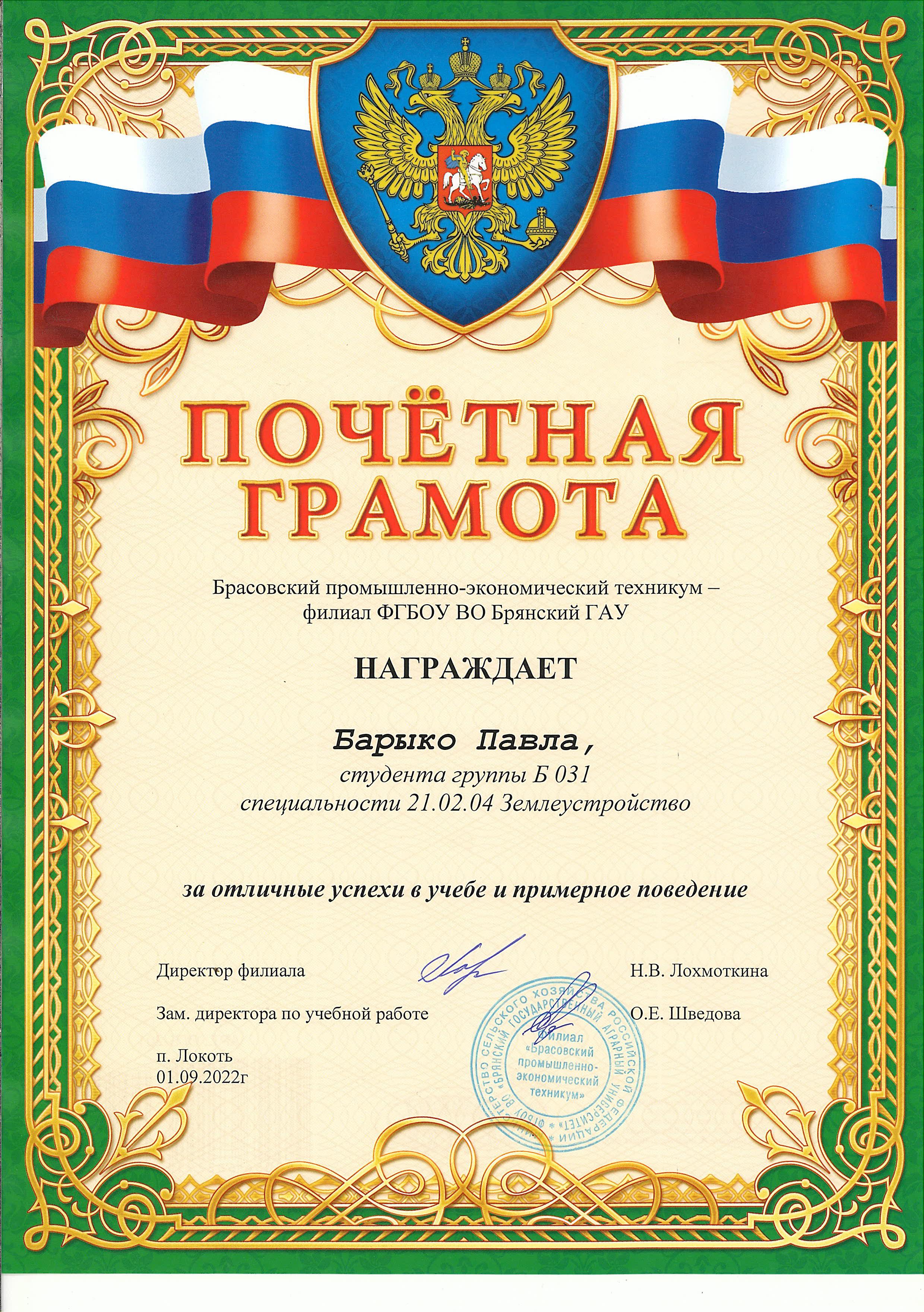 ЗА ОТЛИЧНЫЕ УСПЕХИ В УЧЕБЕ И ПРИМЕРНОЕ ПОВЕДЕНИЕ