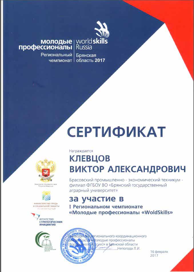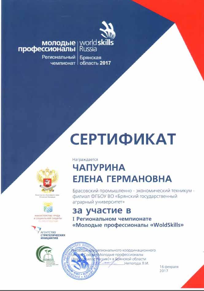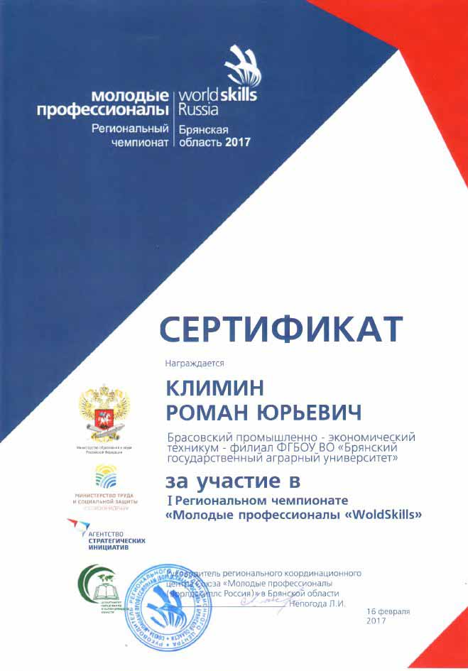 I РЕГИОНАЛЬНЫЙ ЧЕМПИОНАТ "МОЛОДЫЕ ПРОФЕССИОНАЛЫ" WORLDSKILLS RUSSIA