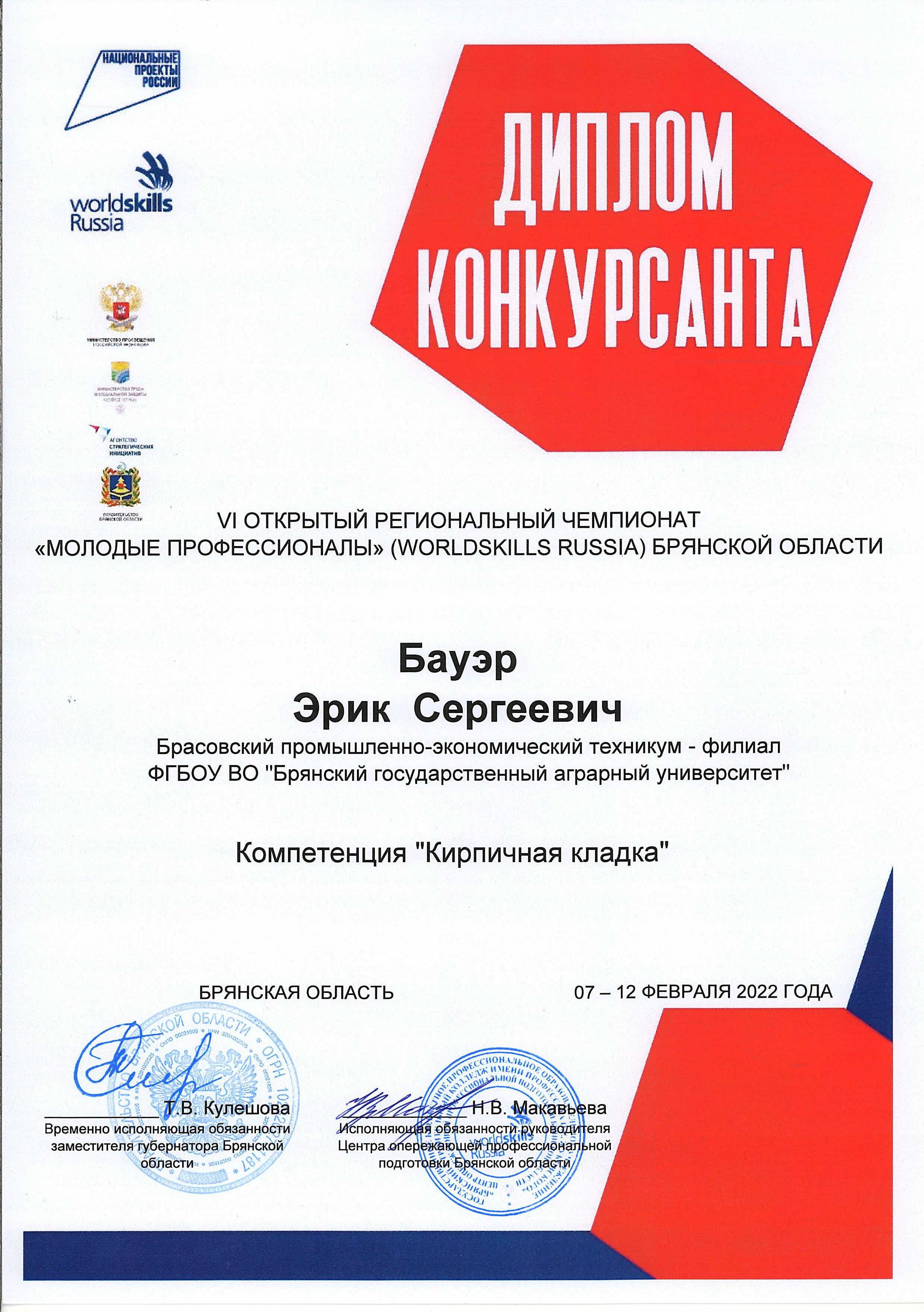 VI РЕГИОНАЛЬНЫЙ ЧЕМПИОНАТ "МОЛОДЫЕ ПРОФЕССИОНАЛЫ" WORLDSKILLS RUSSIA