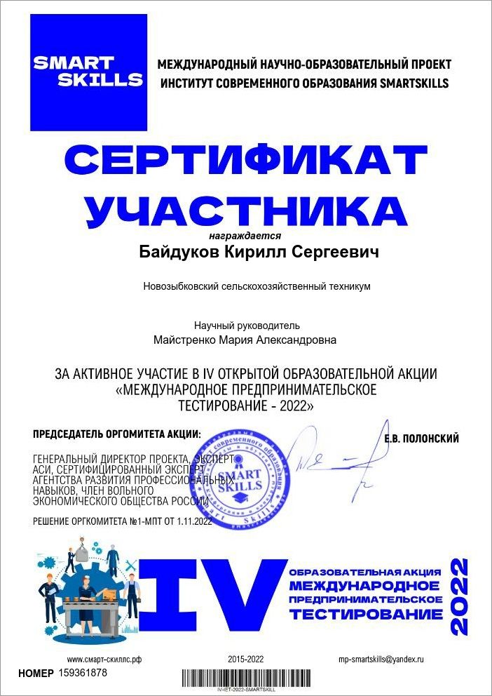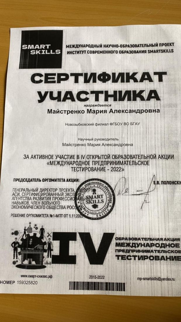 Состоялась IV Образовательная акция «Международное предпринимательское тестирование — 2022».