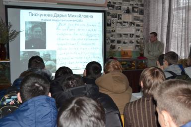 Студенты и преподаватели филиала с готовностью откликнулись на акцию и принесли свои семейные реликвии, а также идентификационные данные к ним. Общими силами было собрано более ста фотографий ветеранов Великой Отечественной войны. Это – преподаватели техникума, отцы, деды и прадеды наших преподавателей и студентов. Выпущено две брошюры из рубрики «Война прошла по их судьбе» – о ветеране Великой Отечественной войны И.В. Пизюкове, а также о выпускнике техникума, малолетнем узнике Фукс Александре Васильевиче и выпускнице 1948 года Румянцевой Розе Федоровне.(вставить титульные листы книжек) Подготовлен к выпуску материал о педагогах техникума – ветеранах Великой Отечественной войны, о заслуженном учители РФ Ковалеве Н.В., о эвакогоспитале 3813, который был размещен в 1943-1944 годах в уцелевших зданиях техникума. К 30-летию чернобыльской трагедии подготовлена брошюра «Не гаснет памяти свеча», посвященная павшим и живым участникам ликвидации катастрофы на ЧАЭС.