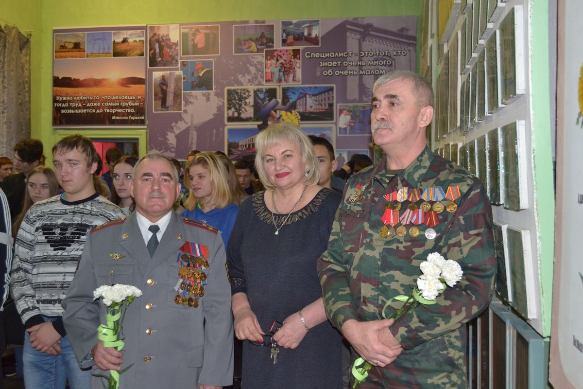 «Рубцом на сердце лег Афган» – под таким названием 20 февраля прошел час памяти в музее Новозыбковского филиала. Ведущие – сотрудники Новозыбковской центральной библиотеки Ирина Куценкова и Галина Тормоз – рассказали студентам о людях, которым пришлось на себе испытать дыхание войны и не посрамить честь своей родины, о мужестве и героизме наших солдат и их буднях в Афганистане.