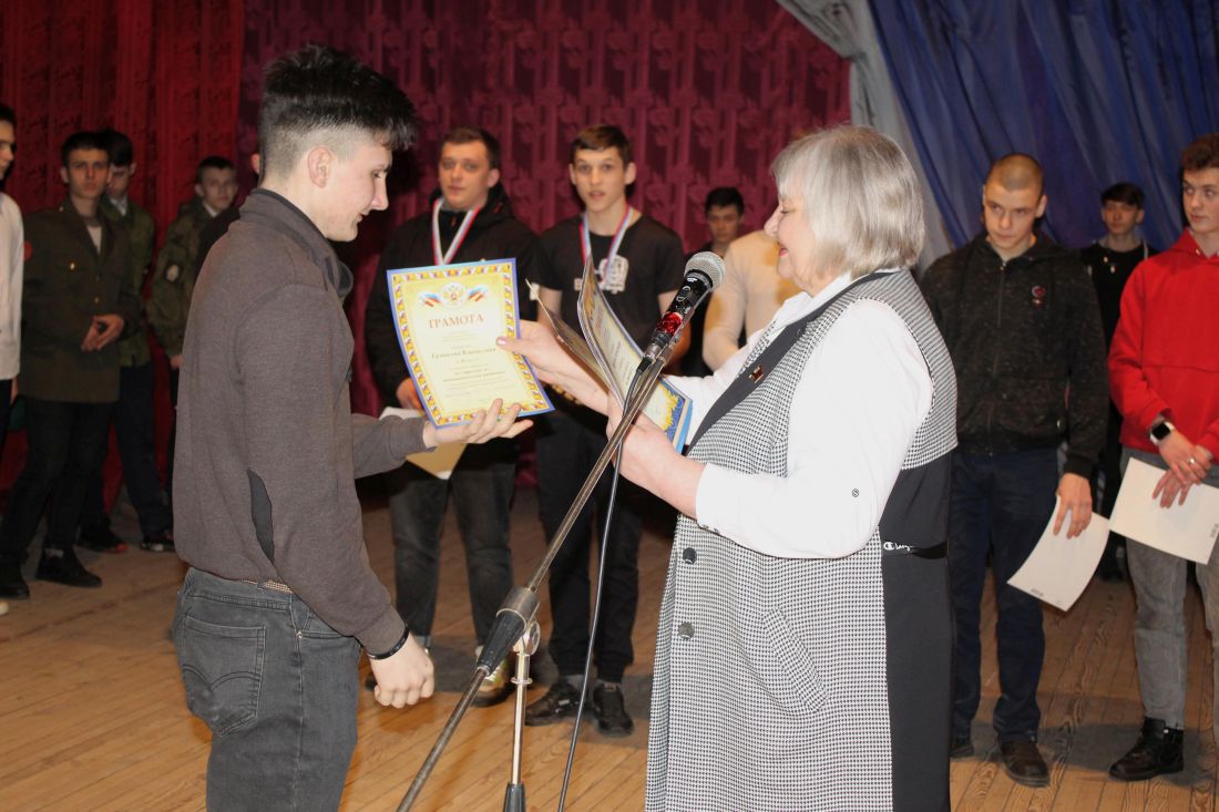 В конце мероприятия директор филиала Валентина Васильевна Бондаренко поздравила присутствующих с наступающим Днем защитника Отечества. Победителям и призерам спортивных и военно-прикладных соревнований, проходивших в рамках месячника, были вручены грамоты.