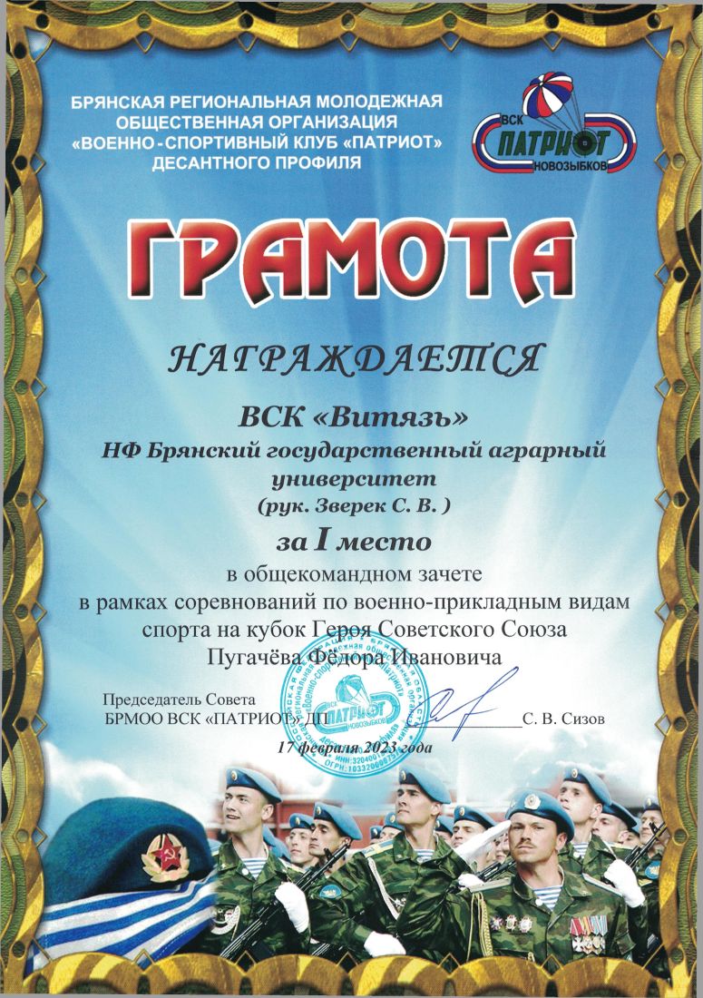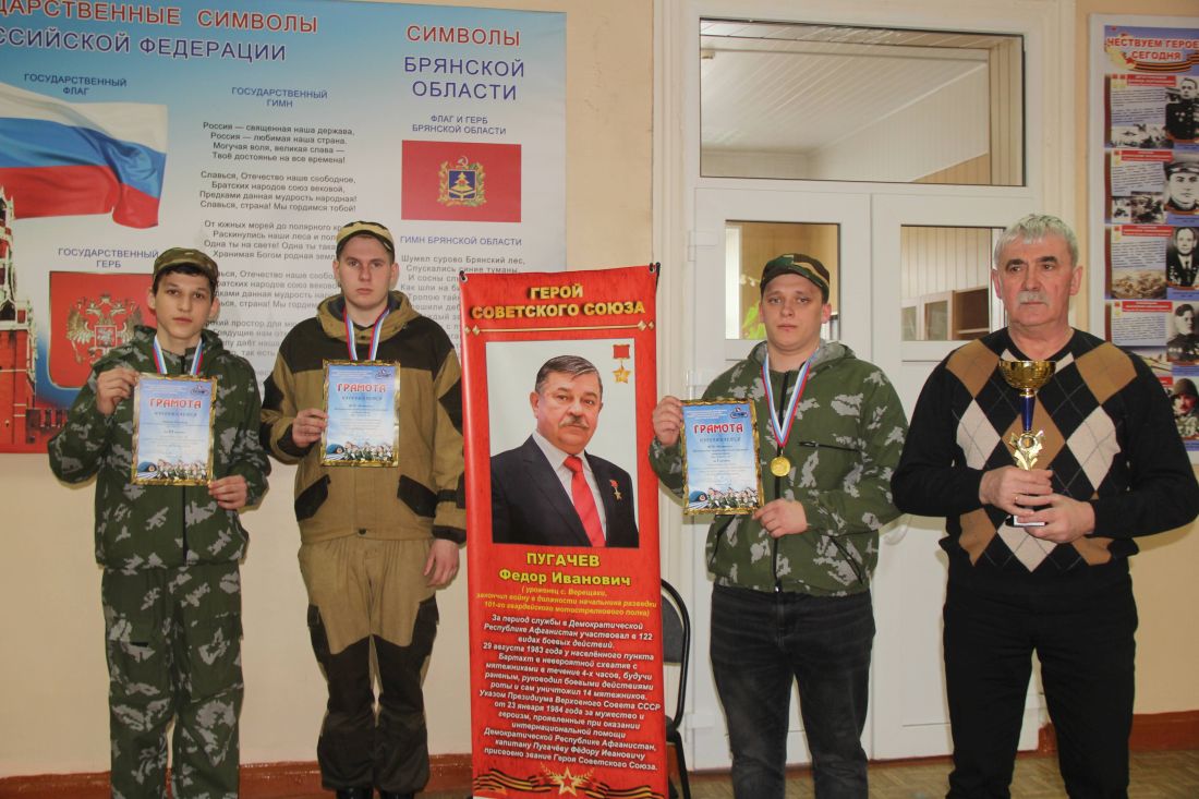 17 февраля команда военно-спортивного клуба «Витязь» Новозыбковского филиала принимала участие в соревнованиях среди участников юнармейского движения Новозыбковского городского округа на кубок Героя Советского Союза Пугачева Федора Ивановича.