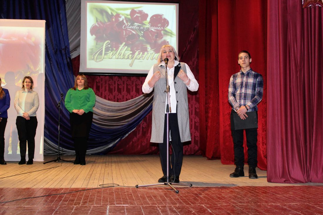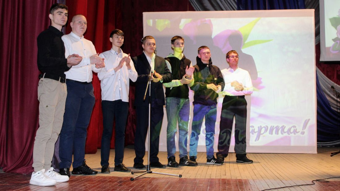 «Дорогие женщины и девушки! От всего сердца желаем, чтобы не только в праздники, но и в будни у вас всегда было много цветов и добрых слов от благодарных и любимых вами студентов! Красоты вам и любви, счастья и здоровья, радости и удачи! Будьте молодыми, бодрыми, красивыми, очень уважаемыми и любимыми! Мы от всего сердца поздравляем женщин с 8 марта, желаем весеннего настроения, радостных улыбок и сияния глаз!» В этот мужской словесный букет добавила теплых слов и директор техникума Бондаренко Валентина Васильевна.