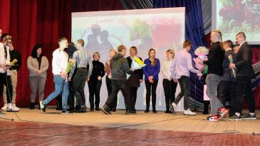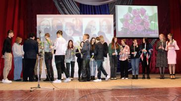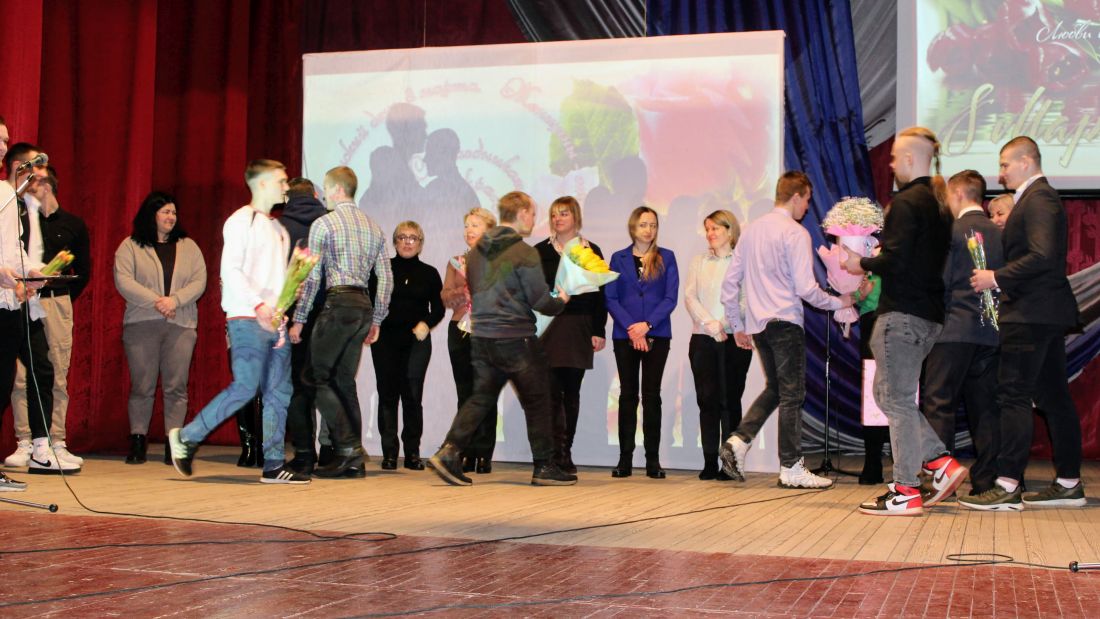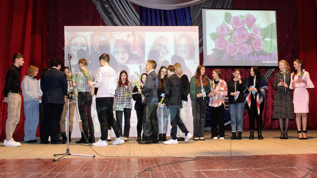 Ребята со сцены говорили теплые слова, пели песни, и каждая женщина учебного заведения получила от ребят цветы.