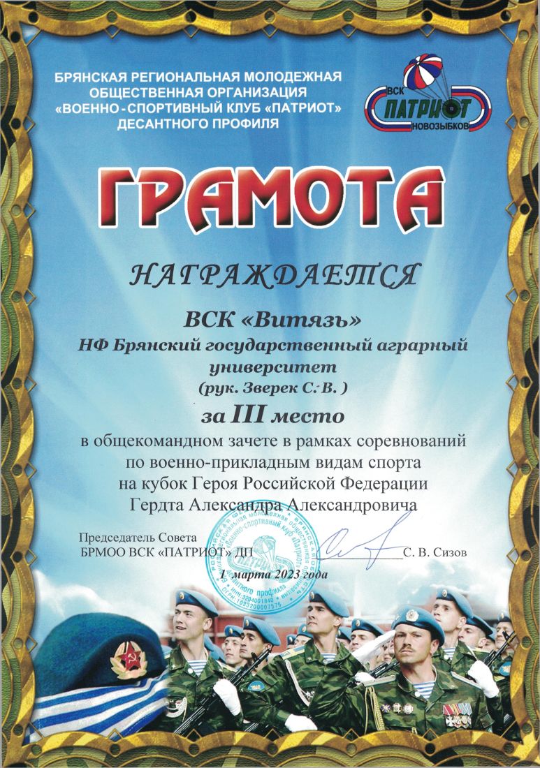 1 марта команда военно-спортивного клуба «Витязь» Новозыбковского филиала принимала участие в соревнованиях среди участников юнармейского движения Новозыбковского округа на кубок Героя России Александра Гердта.
