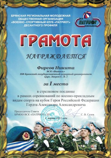 В личном первенстве Никита Фирсов занял 1 место в стрелковом поединке из пневматической винтовки.