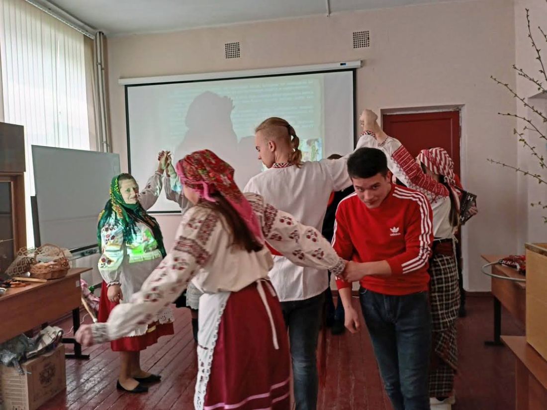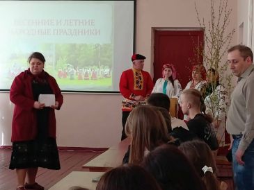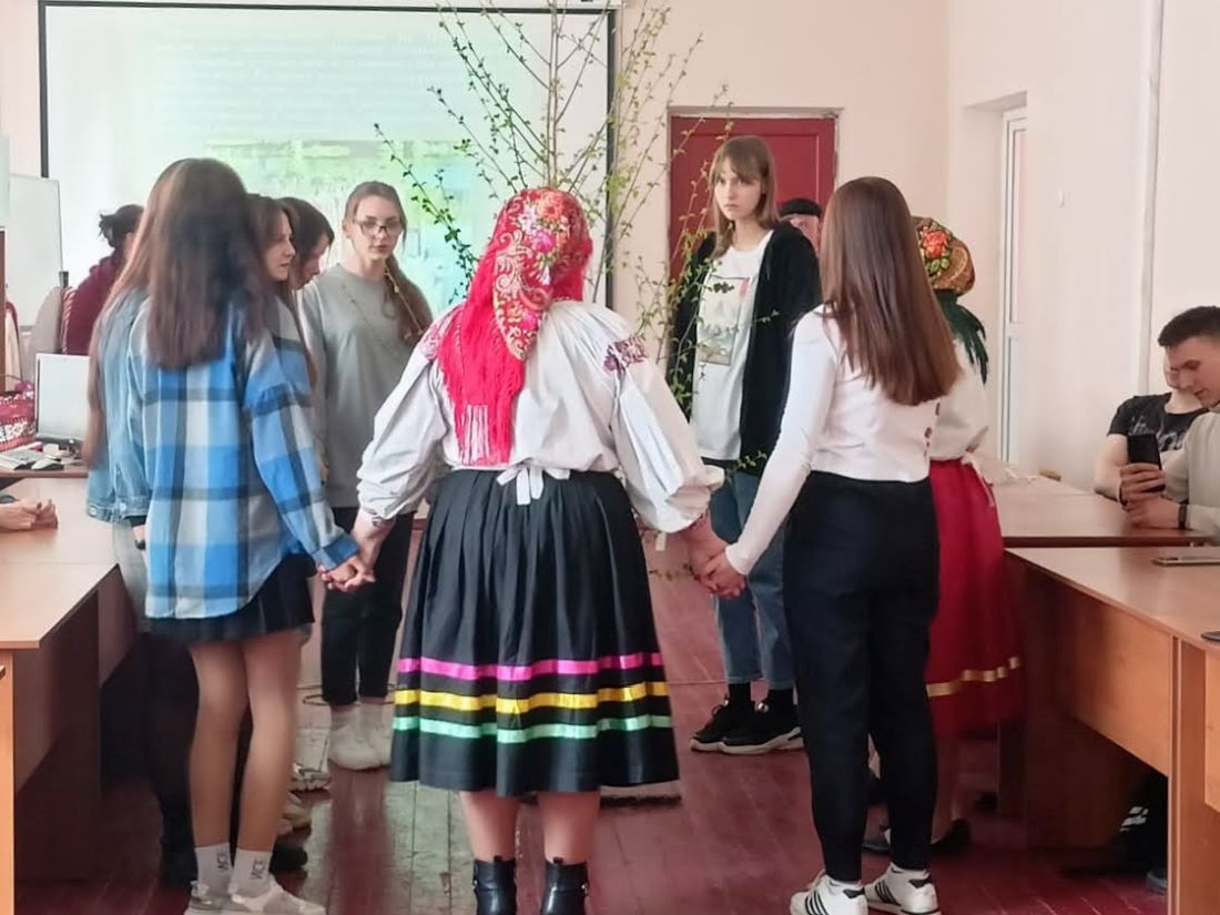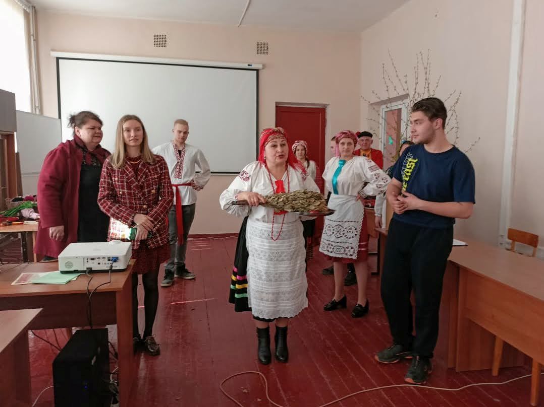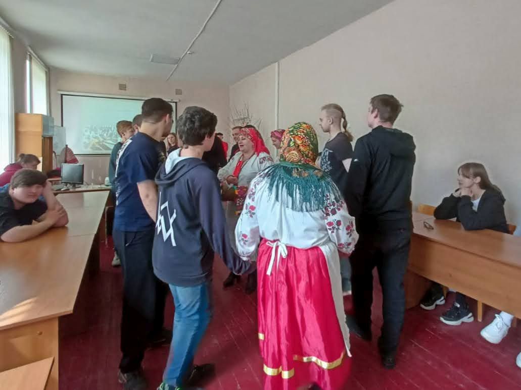 Работники культуры организационно-творческого центра Новозыбковского городского округа подготовили для студентов техникума этнографическую карусель «Песни и обряды земли Новозыбковской, величающие землю-матушку». Участники рассказали о народных праздниках, которые существуют в нашем регионе, традициях и обрядах.