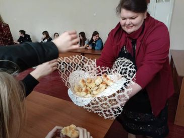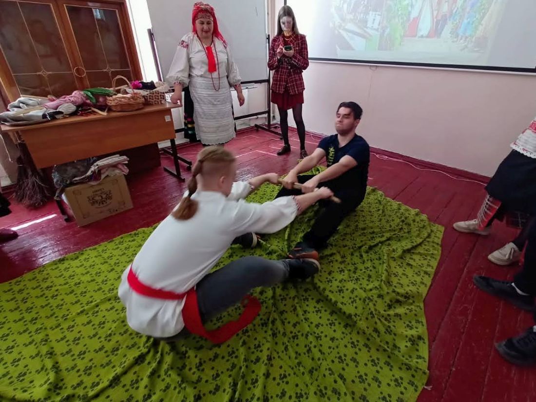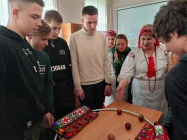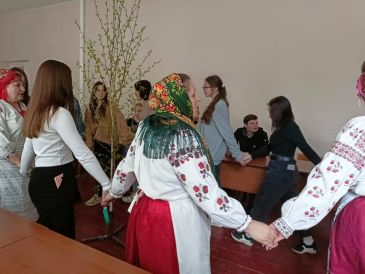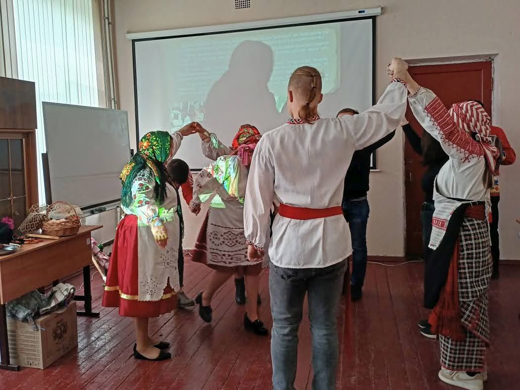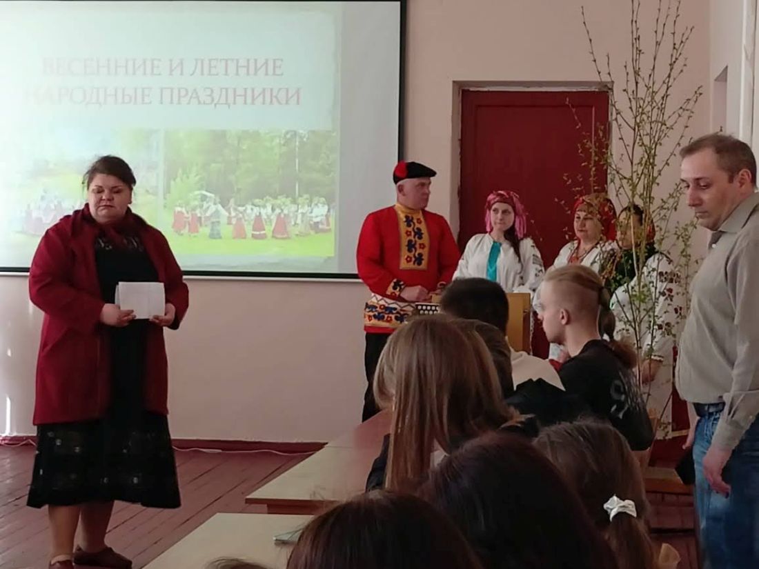 Работники культуры организационно-творческого центра Новозыбковского городского округа подготовили для студентов техникума этнографическую карусель «Песни и обряды земли Новозыбковской, величающие землю-матушку». Участники рассказали о народных праздниках, которые существуют в нашем регионе, традициях и обрядах.