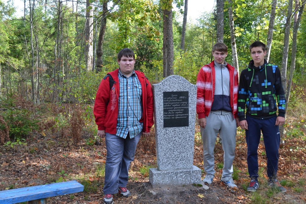 Пройдя партизанскими тропами, ребята почтили память погибших в первом бою Захара Шумеева и Ивана Приходько, и возложили цветы на могилу бойцов, увидели место, где 1 мая 1943 года состоялся парад партизанских соединений русских, украинских и белорусских партизан, дислоцированных в Софиевских лесах.