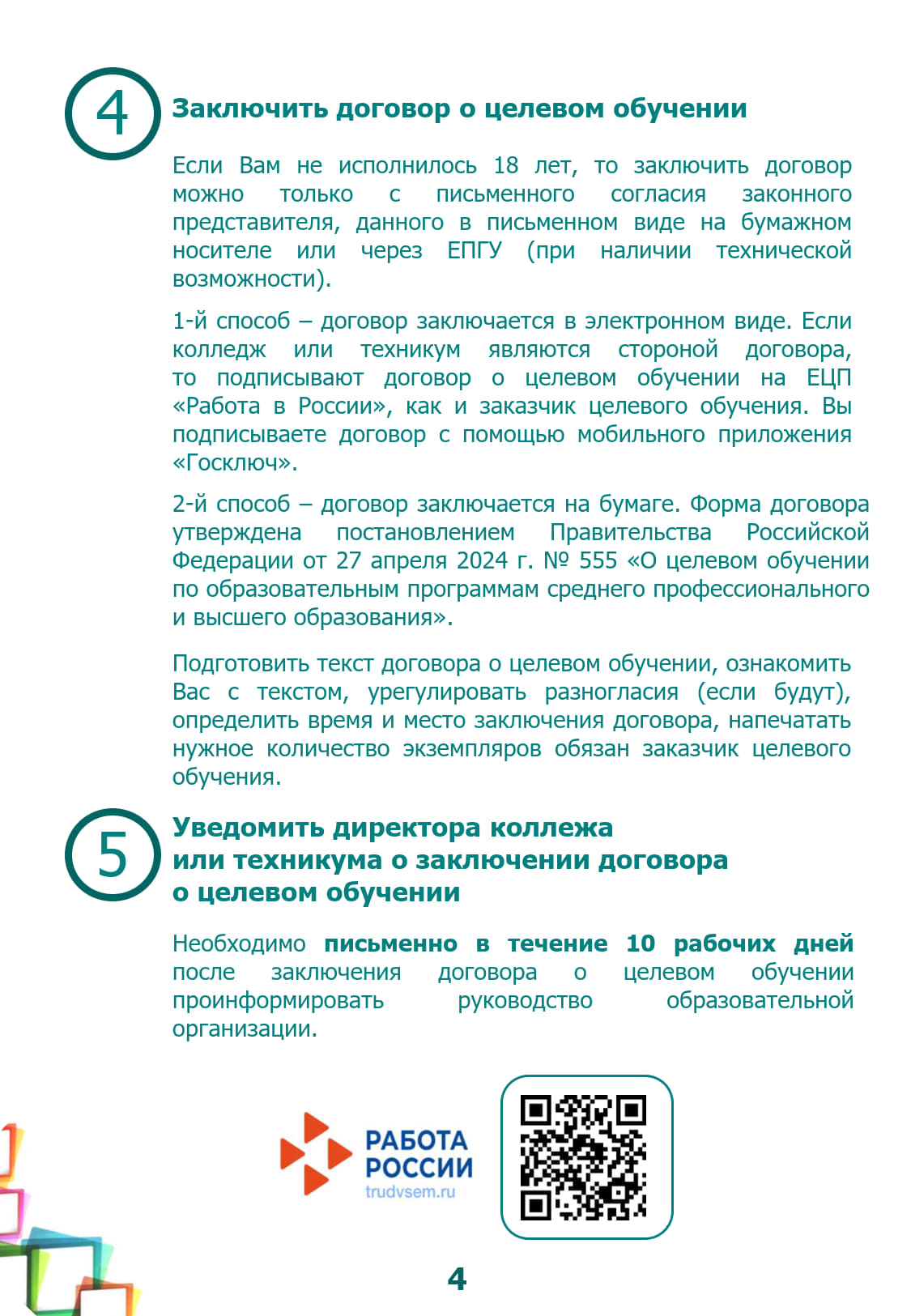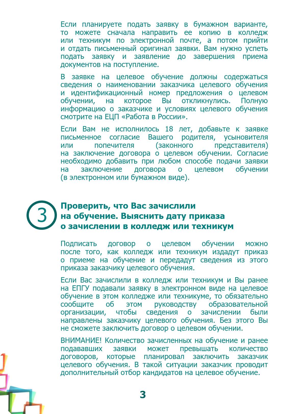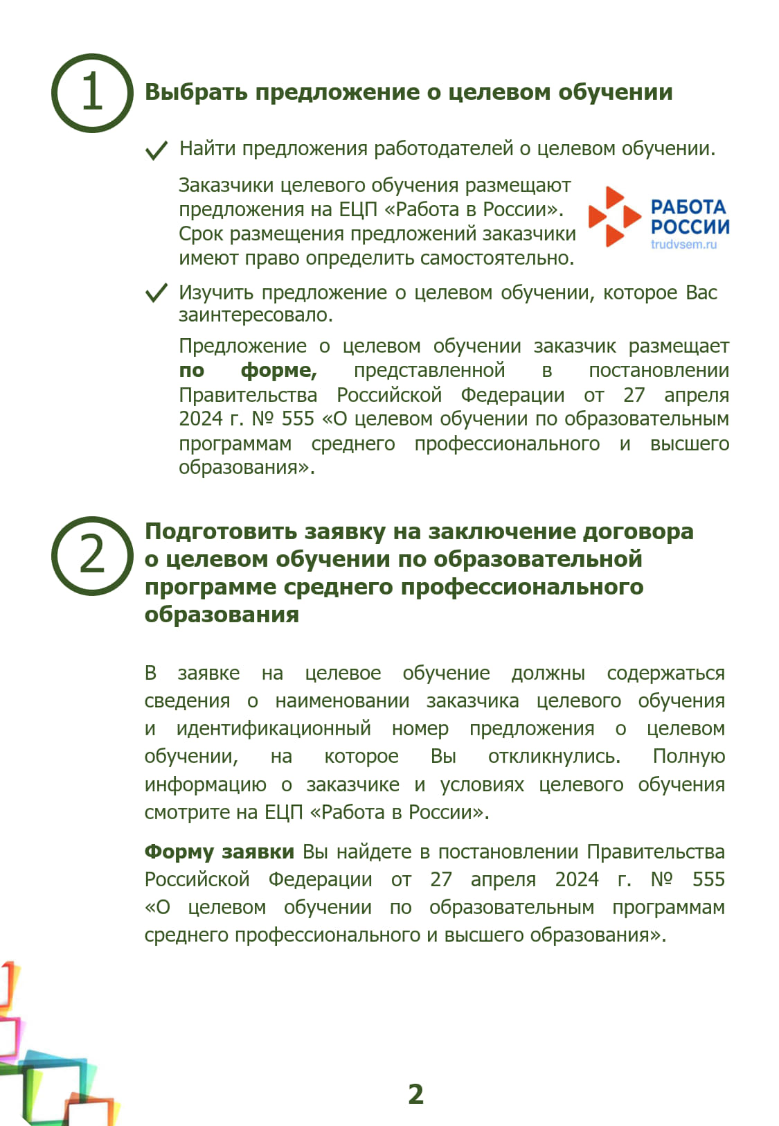 Памятка об организации целевого обучения для абитуриента, поступающего на обучение по образовательным программам среднего профессионального образования (PDF);