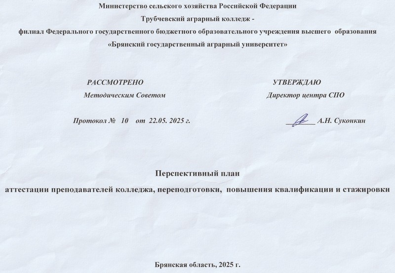 2017г- Стажировка по направлению «Экономика и управление сельскохозяйственным производством» Государственное казенное учреждение Брянской области «Трубчевское районное управление сельского хозяйства» 2019г–КПК по программе дополнительного профессионального образования «Экономика организации» Институт дополнительного профессионального образования ФГБОУ ВО Брянский ГАУ, рег. номер 000571, 72 часа 2022г - КПК по дополнительной профессиональной программе «Разговоры о важном»: система работы классного руководителя (куратора)». ФГАОУ ДПО «Академия реализации государственной политики и профессионального развития работников образования Министерства просвещения Российской Федерации» г Москва, рег. номер у-226723/б, 58 часов. 2024 г. - КПК по дополнительной профессиональной программе «Особенности современного урока по иностранному языку при реализации ФГОС СОО», ООО «Институт развития образования, повышения квалификации и переподготовки», г. Абакан. Рег. номер 377527, дата выдачи 22 апреля 2024 г., 36 часов. 2024 г. – КПК (с 21 мая по 05 июня 2024 г.) по дополнительной профессиональной программе повышения квалификации «Ценностные основы воспитательной работы и молодёжная политика в аграрном Вузе». Институт дополнительного профессионального образования ФГБОУ ВО Брянский ГАУ, рег. номер 004728, 36 часов 2024 г. - КПК в Институте дополнительного профессионального образования ФГБОУ ВО Брянский ГАУ. Дополнительная профессиональная программа повышения квалификации «Технологии инклюзивного обучения в образовательной организации высшего образования. Организация инклюзивной образовательной среды», в объеме 16 часов. 2024 г – индивидуальная стажировка (с 01 апреля по 31 мая 2024 г.) в МУП «Трубчевская МТС «АГРО» по программе «Производство, первичная переработка продукции животноводства и управление работами по производству и переработке её продукции». 2025 г. – КПК по программе «Общие вопросы охраны труда и функционирования системы управления охраной труда» в ЧУ ДПО «ФИПК» г. Барнаул с 24 марта 2025г. по 25 марта 2025г., номер 25-03-43460, 16 часов. 2025 г. – КПК по программе «Оказание первой помощи пострадавшим» в ЧУ ДПО «ФИПК» г. Барнаул с 25 марта 2025г. по 26 марта 2025г., номер 25-03-44031, 16 часов. |