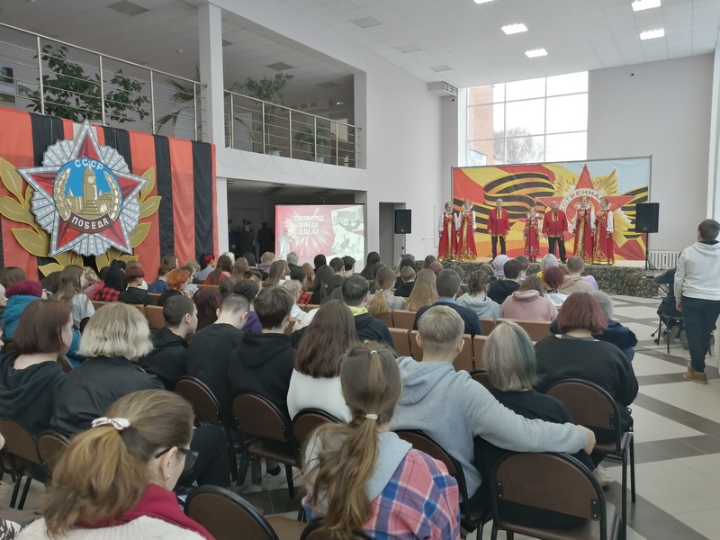2 февраля 2023 г. обучающиеся Трубчевского аграрного колледжа приняли участие в районном фестивале «Бессмертие и Слава Сталинграда», посвященному 80-летию разгрома советскими войсками немецко-фашистских войск в Сталинградской битве в 1943 году. Мероприятие проходило в районном ДК, участие приняли около полутора десятков коллективов художественной самодеятельности города. От колледжа на сцене выступала Халимова Зарина с песней «Ах, эти тучи в голубом…» и по окончании концерта получила грамоту за участие.