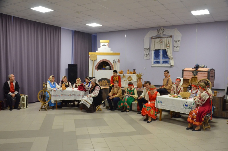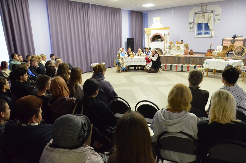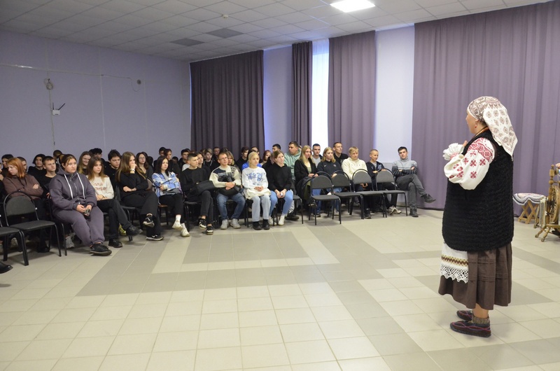 08.11.2023 г. для студентов Трубчевского агроколледжа было показано театрализованное фольклорное представление "Старины живая нить". Участницы фольклорного ансамбля "Прялица" и ребята из образцового ансамбля "Забава" (руководитель коллективов Е. Решетникова) наглядно показали зрителям как отдыхали наши дедушки и бабушки, когда не было телевизоров, телефонов и даже книг... А что же они делали? Вышивали, пряли, резали ложки, пели песни, играли, танцевали, рассказывали сказки.