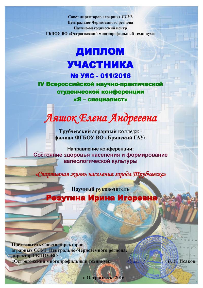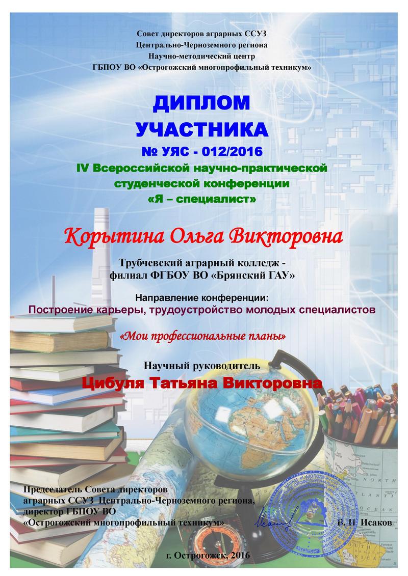Студенты 4 курса специальности Экономика и бухгалтерский учет (по отраслям) Корытина Ольга и Ляшок Елена приняли участие в IV Всероссийской научно - практической студенческой конференции «Я - Специалист». По итогам конференции опубликован сборник с работами студентов. Научными руководителями выступили Цибуля Т.В., Резутина И.И.