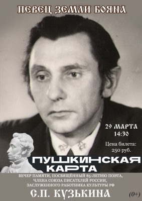 29.03.2022 г. студенты 1-х – 2-х курсов Трубчевского аграрного колледжа посетили концерт – вечер памяти, посвященный творчеству Степана Павловича Кузькина - члену Союза писателей России, лауреату литературных премий "Серебряная лира" им. А.К. Толстого, премии Бояна, премии Брянского землячества в Москве имени поэта Николая Мельникова, премии белорусского просветителя Кирилла Туровского, заслуженному работнику культуры РФ. Многие годы он посвятил журналистике, являясь зав.отделом, зам.редактора трубчевской районной газеты. С 1957 г. руководил литературным объединением «Горизонт». Является зачинателем и популяризатором праздника славянской письменности и культуры "На земле Бояна", который отмечается в Трубчевске с 1986 г.