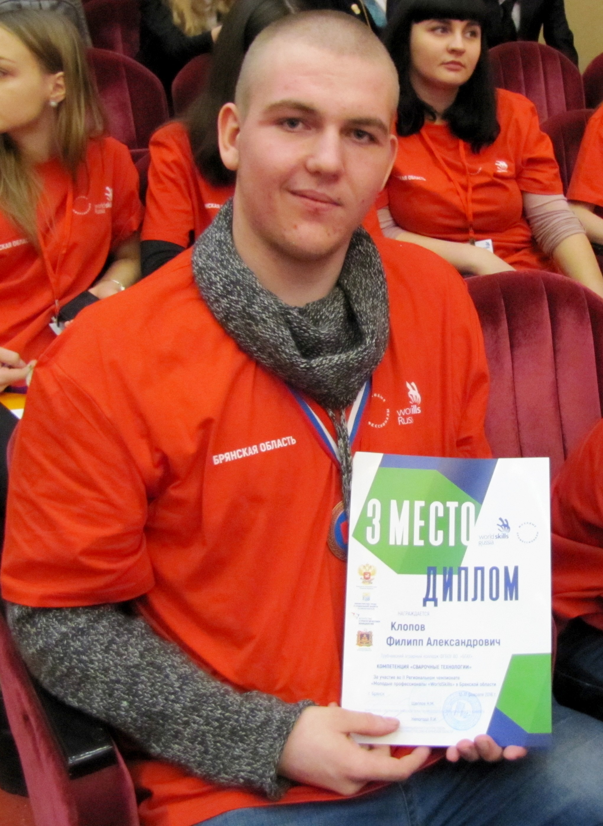 Хороший результат показал студент Трубчевского филиала Брянского ГАУ Филипп Клоков, который в компетенции «Сварочные технологии» занял третье место.