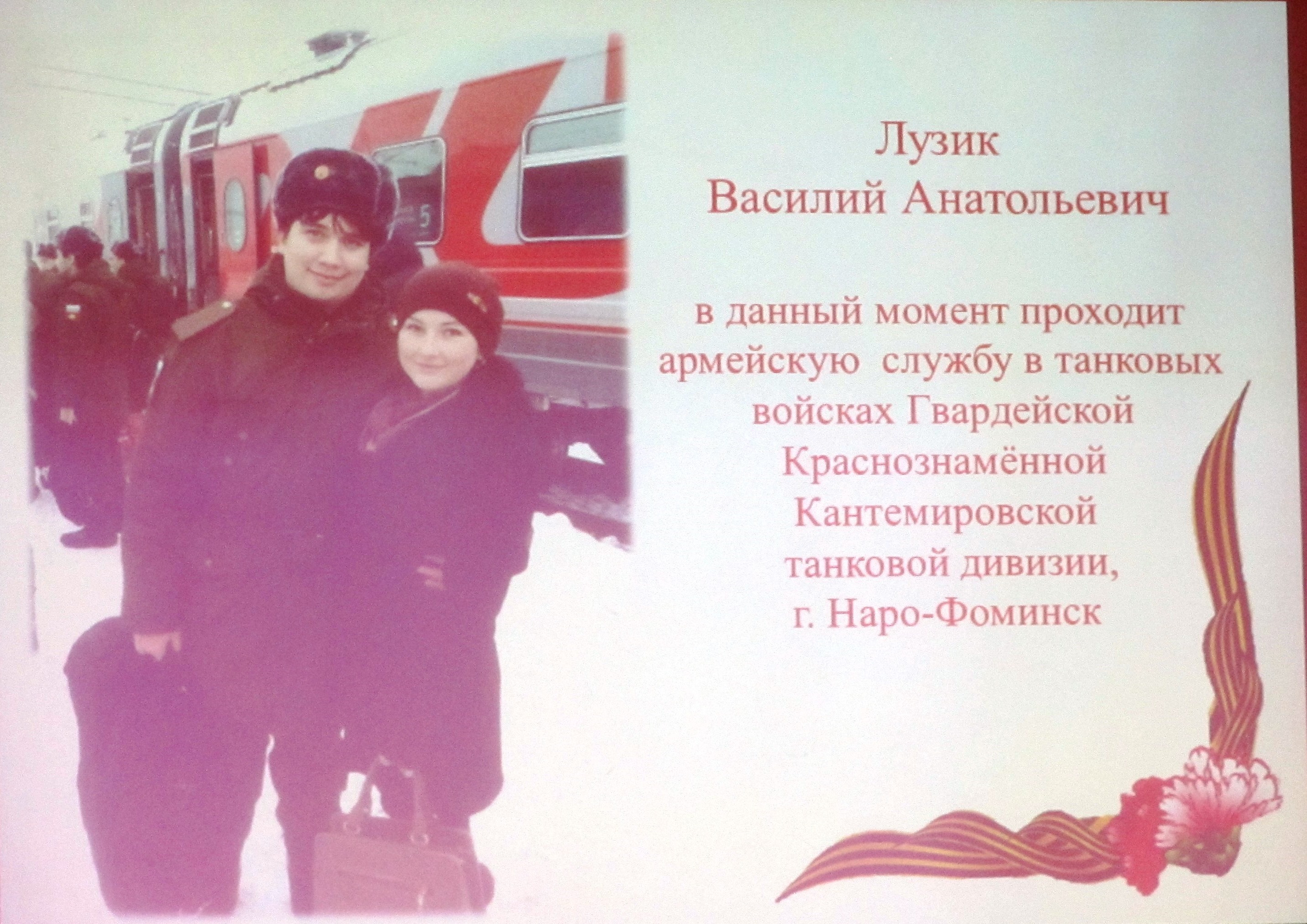 Трогательным моментом мероприятия стала демонстрация на экране страниц «Армейского альбома», точнее назвать его «дембельским», в котором рассказывалось о солдатской службе преподавателей и сотрудников нашего университета. Например. полным откровением для меня было то, что некоторые сегодняшние профессора и доценты в своё время были доблестными и отважными солдатами. Так, Василий Осмоловский служил в тульской парадной парашютно-десантной дивизии, старшина роты. Совершил 123 прыжка с парашютом. 7 ноября 1971 года был участником парада на Красной площади в Москве.