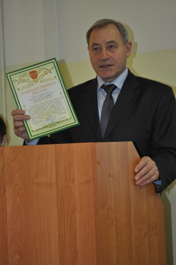 Открыл торжественное собрание проректор по учебной работе Брянской ГСХА Нуриев Г.Г.,поздравивший кафедру и от имени ректора вручивший благодарственное письмо. | |