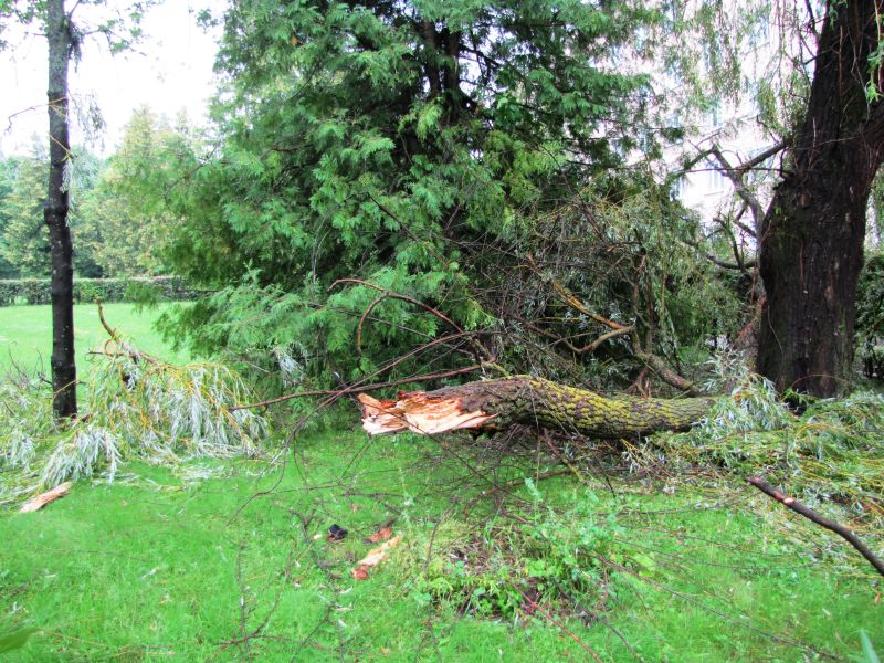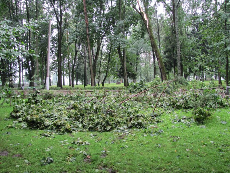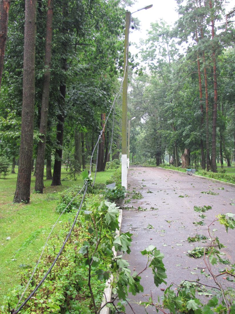 Благо, что ни один человек не пострадал. Что же касается деревьев в парке, то некоторые из них были вырваны с корнем и лежали на земле, словно раненые солдаты. Примерно за один час буйства стихии произошло немало того, что в обыденной жизни называется нанесением ощутимого вреда. Подумайте только, ветер с невероятной силой валил наземь вековые деревья, которые ломались как спички. Помимо деревьев был сбит электрический столб. Естественно в селе отключилось электроснабжение, исчезла вода.
