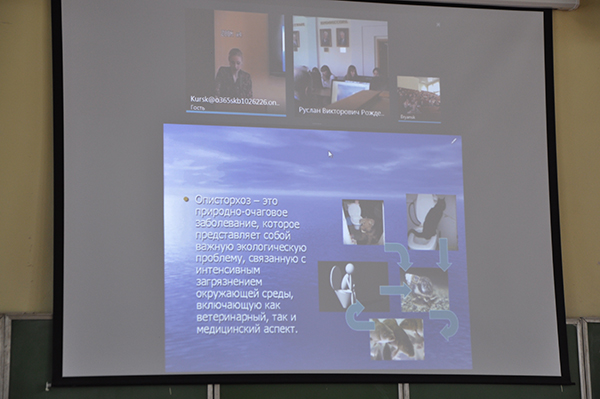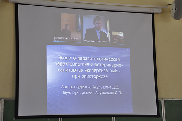 Работа телемоста была посвящена 17-ой международной научно-практической конференции студентов и аспирантов, проводимой на базе БелГСХА. От нашей академии с приветственным словом ко всем участникам телемоста выступил проректор по научной работе, профессор Ториков Владимир Ефимович, а с докладами выступили: - Жук Денис, студент 5-го курса факультета ветеринарной медицины и биотехнологии с докладом на тему: «Влияние топинамбура с разным содержанием селена на активность нейтрофилов в крови у телят», научный руководитель профессор Крапивина Елена Владимировна, доктор биологических наук;