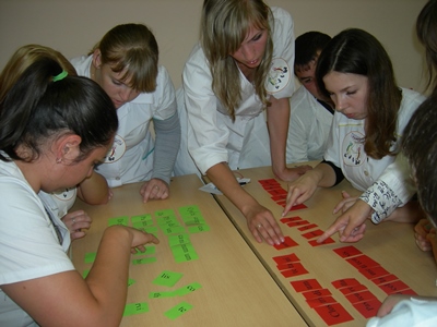 В олимпиаде приняли участие четыре команды, сформированные из студентов 4 курса. Участники олимпиады продемонстрировали подготовленные презентации, разгадывали кроссворды, собирали пазлы, участвовали в конкурсе капитанов и т.д.